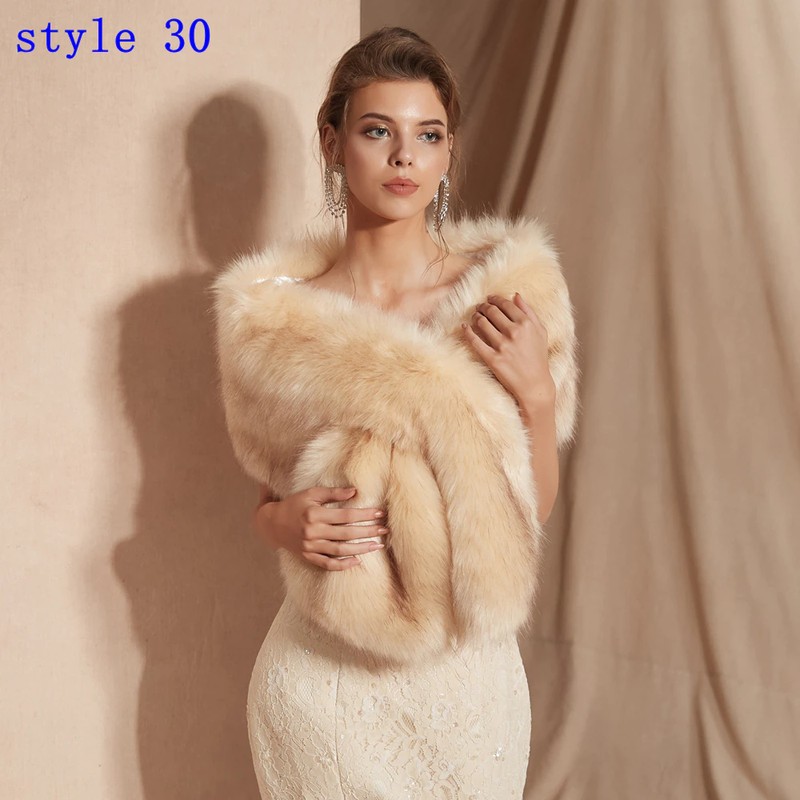 30 Farben Frauen Pelz Capes Champagner Hochzeit Bolero Faux Pelz Stola Braut Jacke Formale Partei Shrug Spaziergang Neben Sie De Mariage