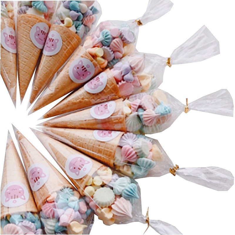 50 teile/los DIY Candy Bag Hochzeit Gastgeschenke Birthday Party Dekoration Süße Cellophan Transparent Kegel Lagerung Mit Organza Beutel