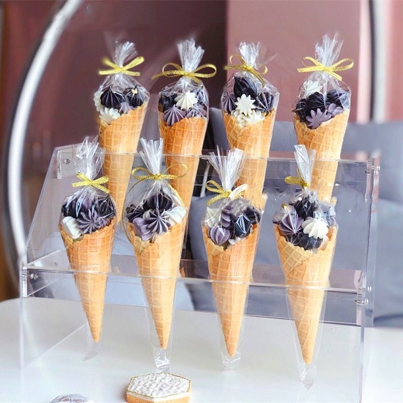 50 Teile/Los Diy Candy Bag Hochzeit Gastgeschenke Birthday Party Dekoration Süße Cellophan Transparent Kegel Lagerung Mit Organza Beutel