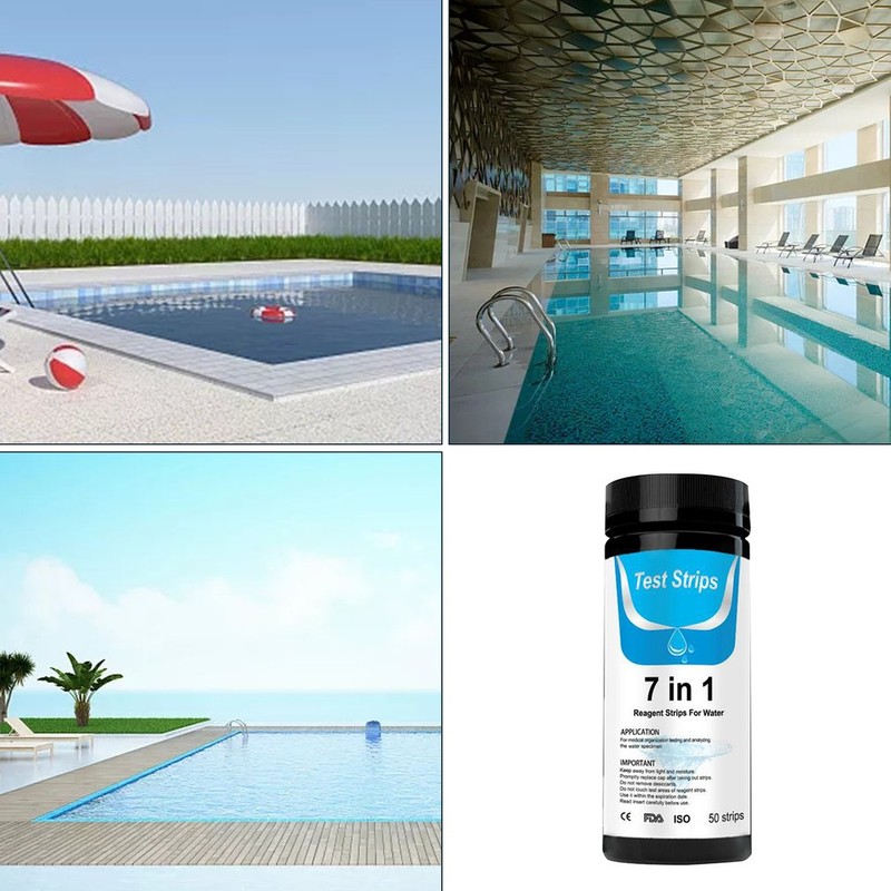 50 Streifen Wasser Test Papier 7In1 Ph Alkalität Nitrit Chlor Brom Kh Gh No2 No3 Härte Teststreifen Für Pool, Aquarium Wasser