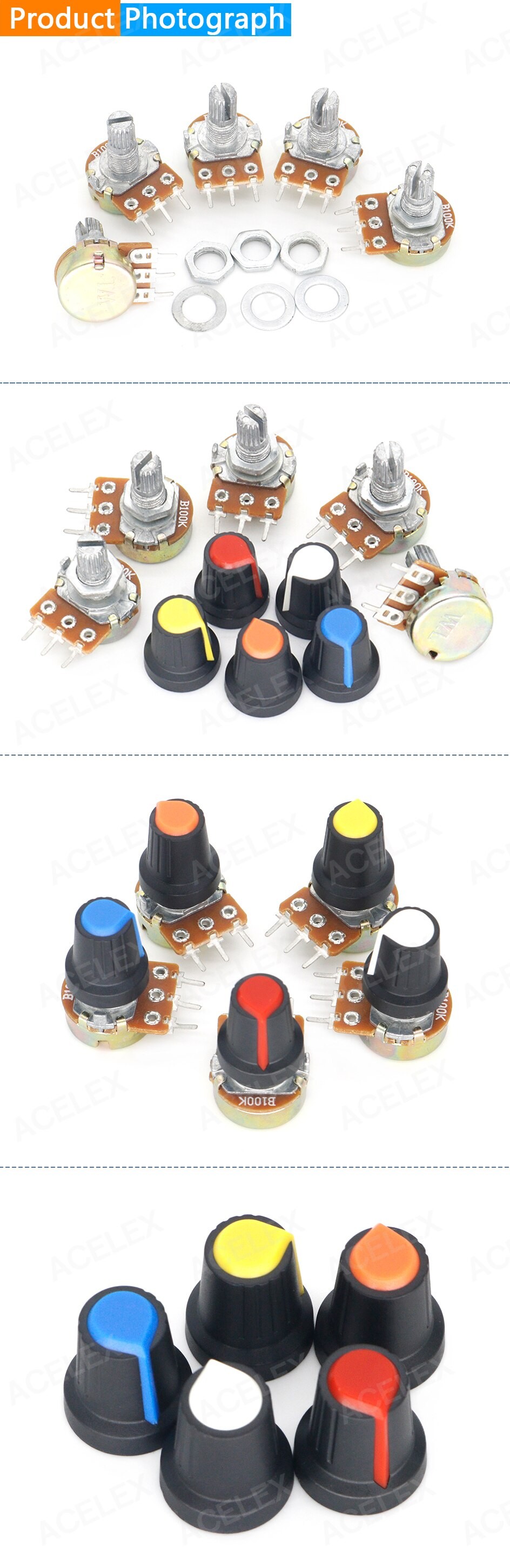 5 Teile/Los Wh148 1K 10K 20K 50K 100K 500K Ohm 15Mm 3 Pin Linear Taper Dreh Potentiometer Widerstand Für Arduino Mit Ag2 Weiße Kappe