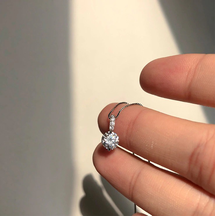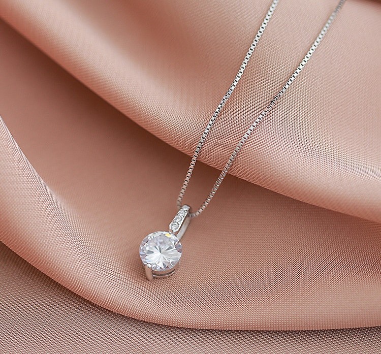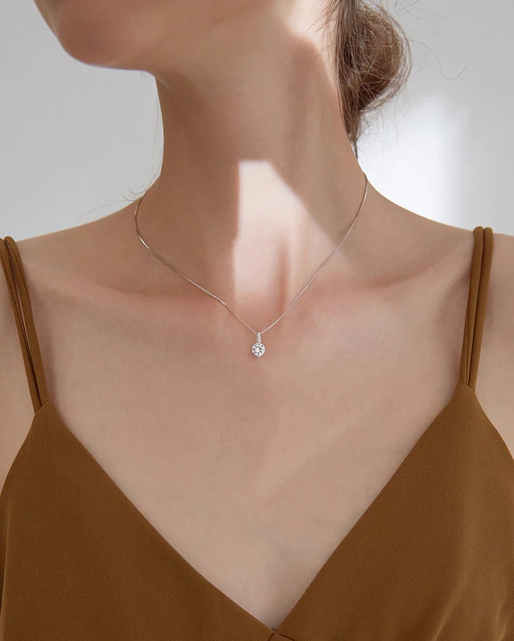 925 Sterling Silber Geometrische Drop Halskette Schlüsselbein Kette Frauen Mode Schmuck Glanz Zirkon Anhänger