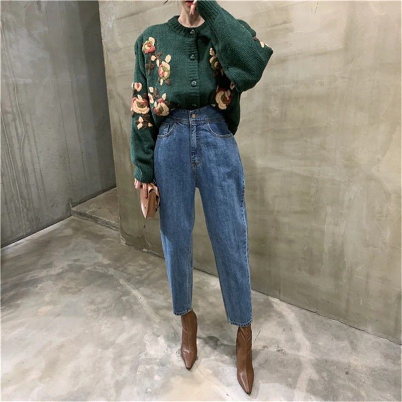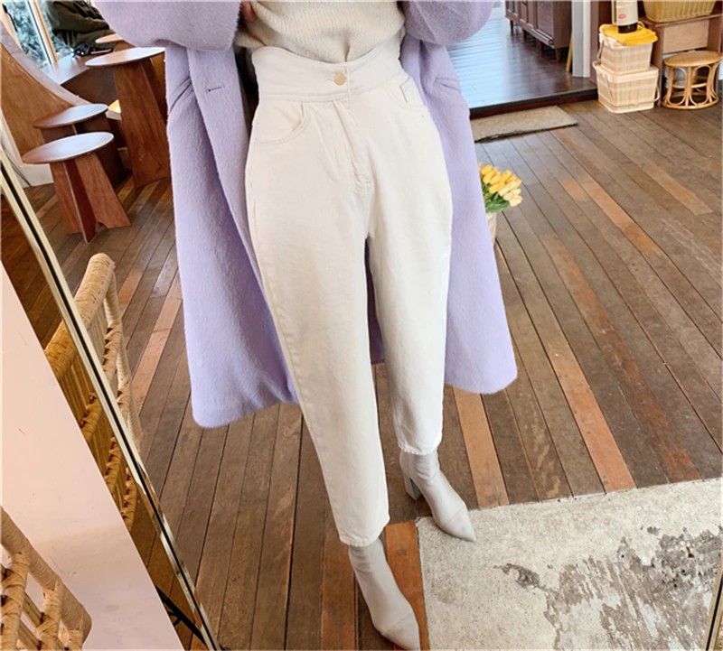 Bgteever Frauen Harem Jeans Hosen Mode Hohe Taille Lose Weiß Denim Jeans Weiblichen Tasten Hosen Frühling Neueste Streetwear