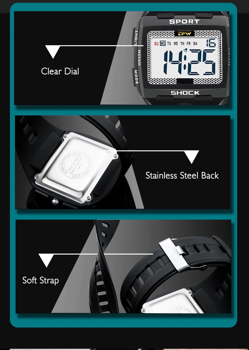 Große Zahlen Einfach Zu Lesen 50 Meter Wasser Resistent Männer Digitale Uhr Outdoor Sport