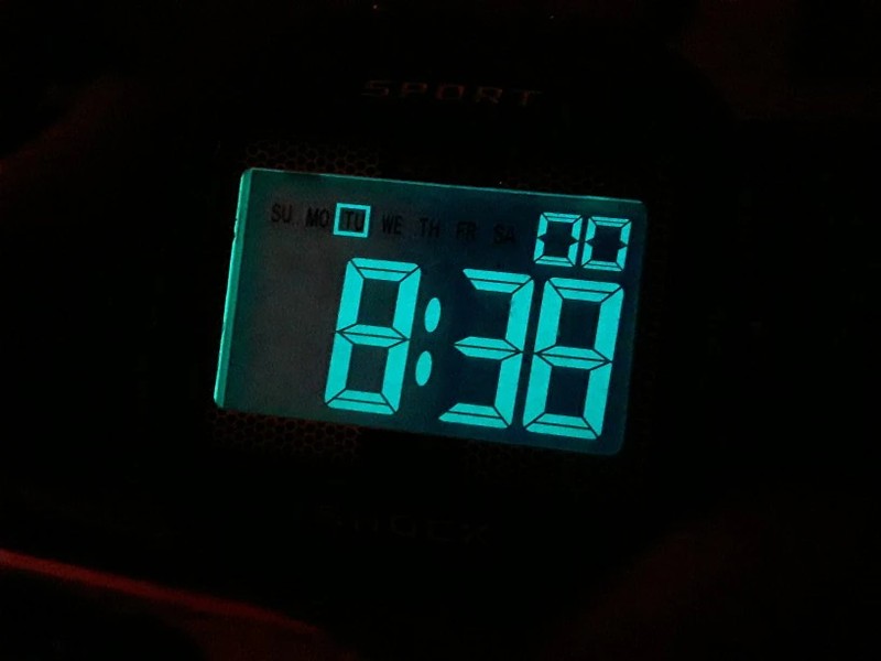 Die licht scheint hell und gleichmäßig über den bildschirm. Sehen die uhr und kalender, wenn es dunkel ist.