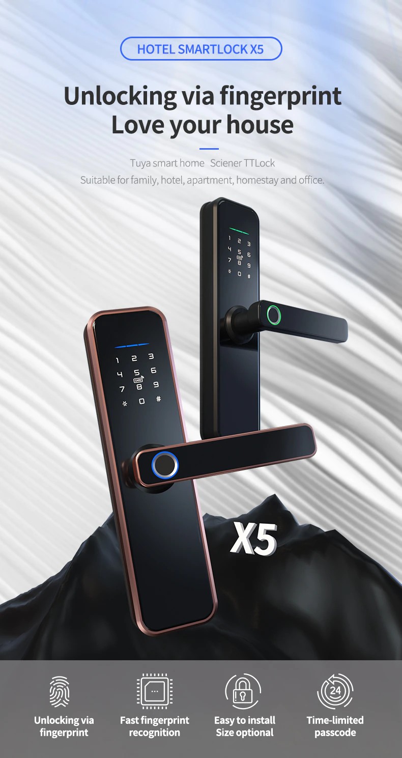 Cerradura Intelige X5 Wasserdichte Tuya Biometrische Fingerprint Sicherheit Intelligente Smart Wifi App Passwort Elektronische Türschloss