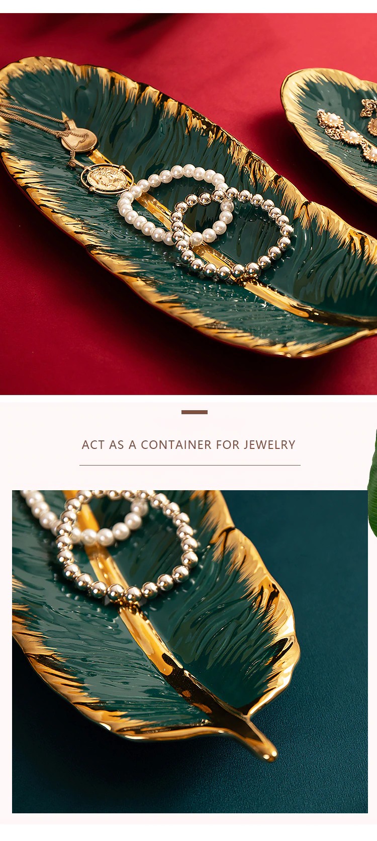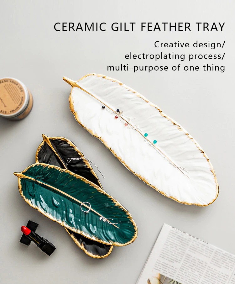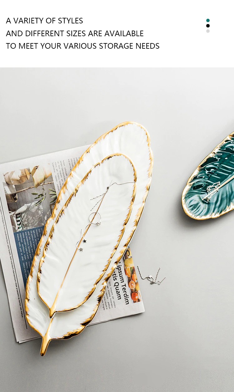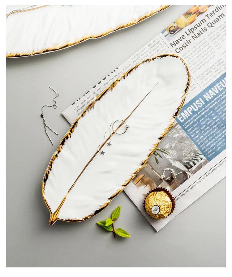 Kreative Luxus Feder Ablage Keramik Obst Kuchen Dessert Geschirr Dish Organizer Schmuck Dekorative Tablett Set