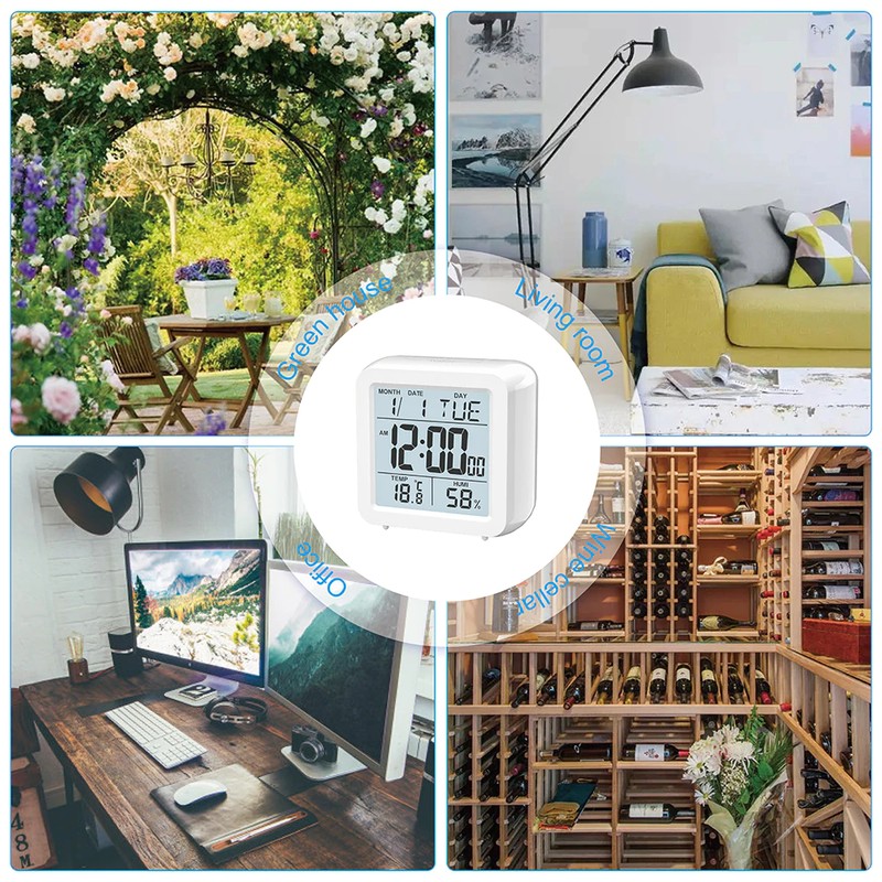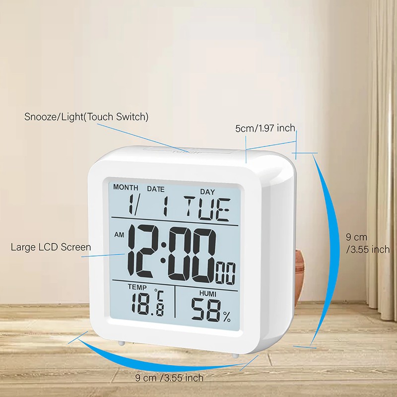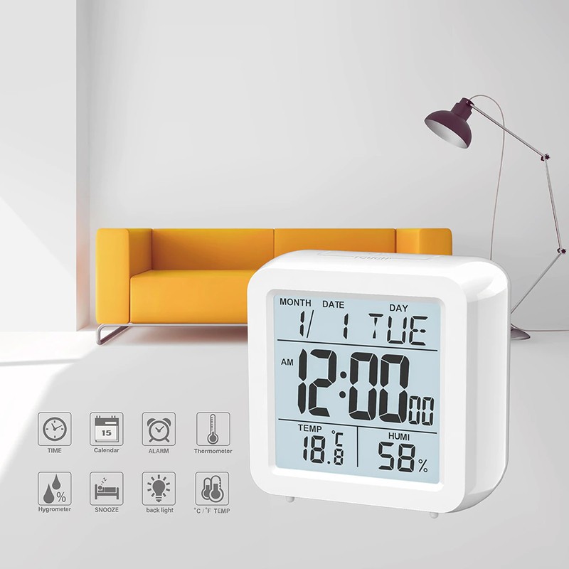 Digital Desktop Lcd Snooze Kalender Wecker Weiß Schlafzimmer Uhr Mit Thermometer &Amp; Hygrometer Für Hause Batterie Betrieben