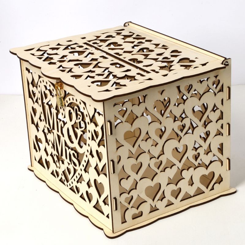 Diy Hochzeit Geschenk Mr &Amp; Mrs Holz Karte Geld Box Fall Mit Schloss Rustikalen Schöne Party Favor Dekoration Geburtstag Lieferungen