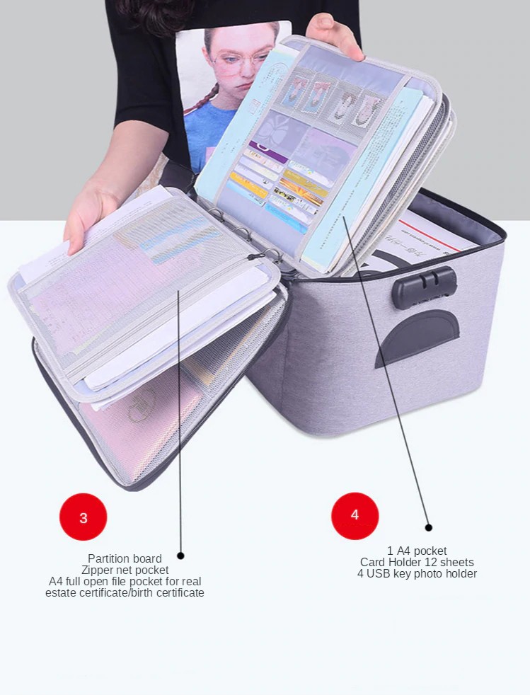 3.Partition bord, Zipper net tasche, A4 volle geöffnete datei tasche für immobilien zertifikat/geburt zertifikat