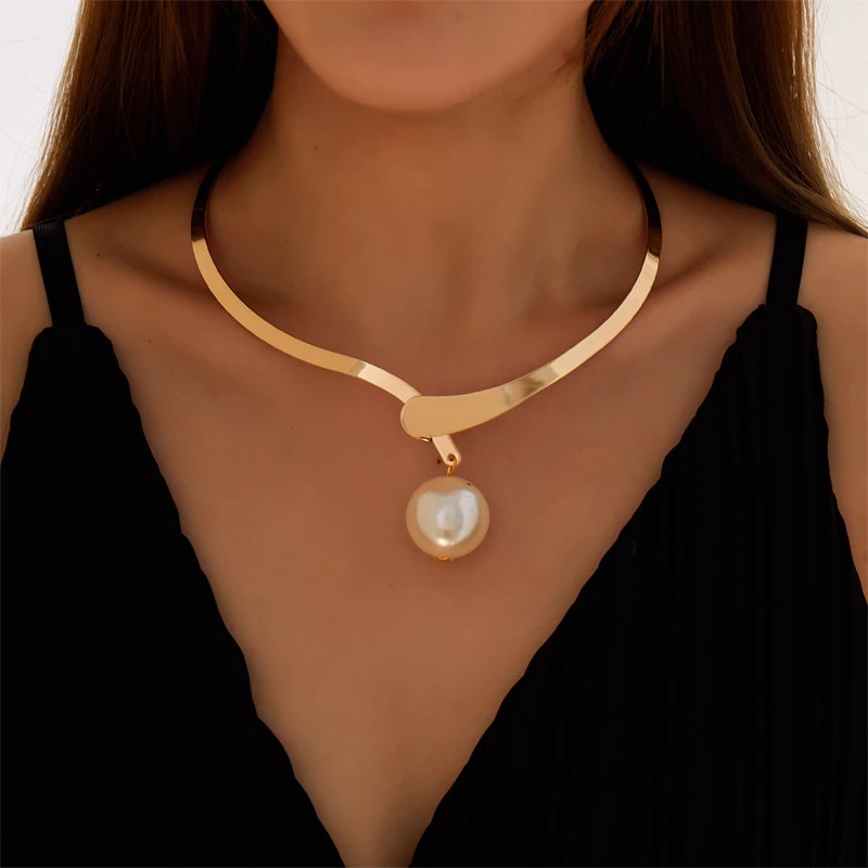 Elegante Einfache Wasser-Welle Perle Halskette Für Frauen Charming Big Metall Geometrische Erklärung Kragen Halskette Schmuck Zubehör