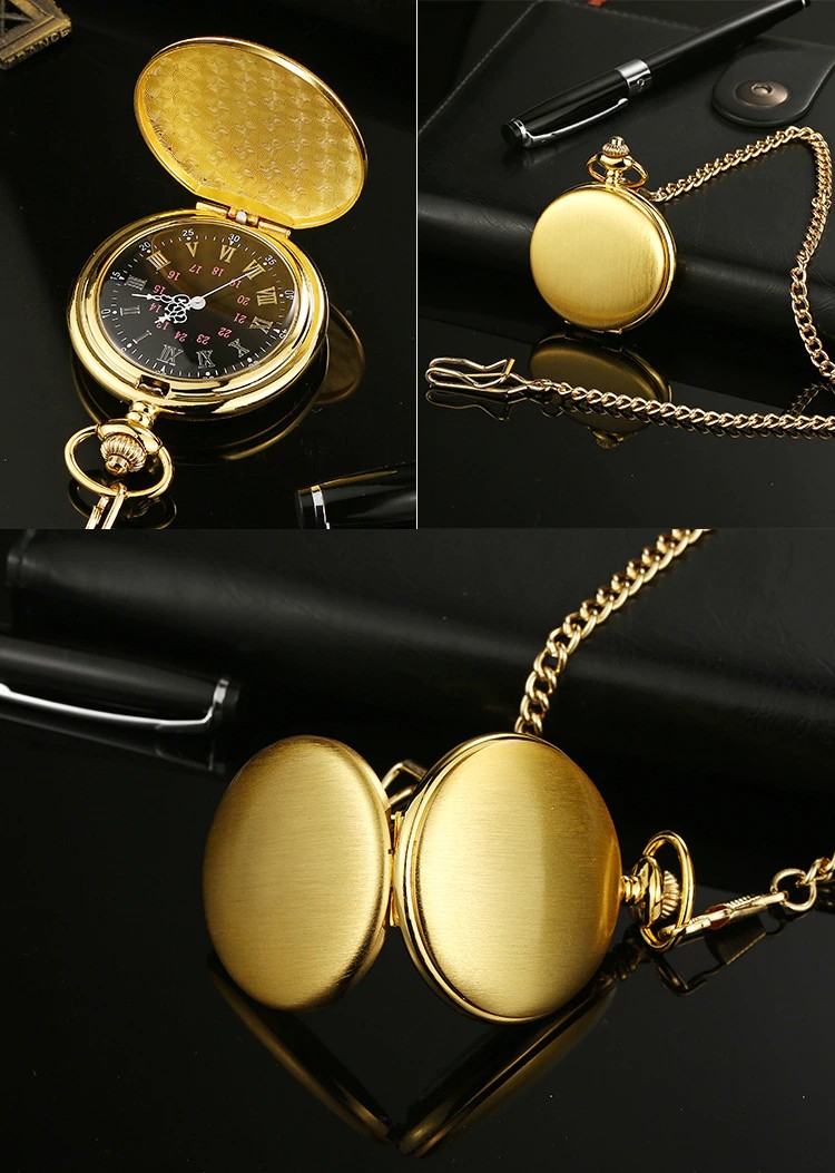 Mode 37Cm Fob Kette Glatte Stahl Quarz Taschenuhr Vintage Römischen Nmber Zifferblatt Anhänger Fob Uhr Geschenke Uhr