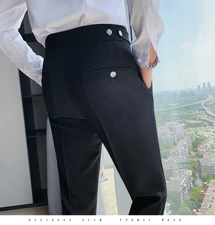 Hohe Qualität Britischen Stil Business Casual Slim Fit Männer Kleid Hosen Feste Alle Spiel Formale Tragen Büro Hosen Herren 36-29