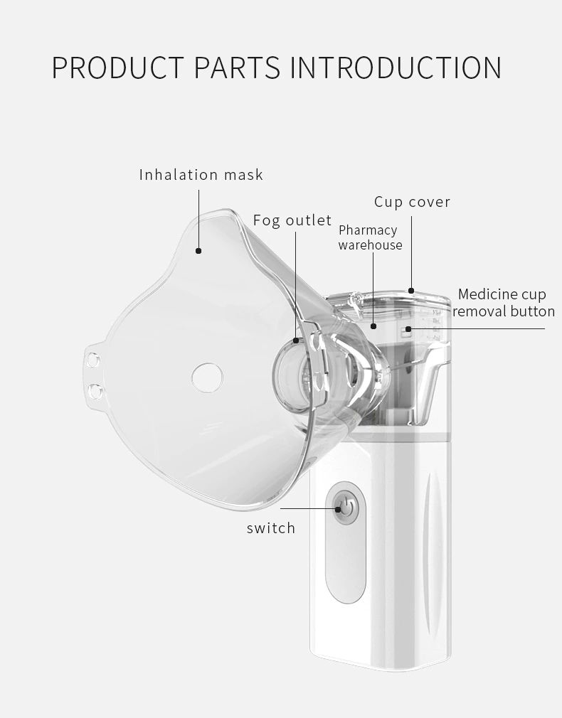 Vor allem für die behandlung von verschiedenen oberen und unteren atemwege krankheiten, wie erkältungen, fieber, husten, asthma, halsschmerzen, pharyngitis, rhinitis, bronchitis, staublunge und andere krankheiten in die luftröhre, bronchi, alveoläre, brust. Vernebelt inhalation therapie ist eine wichtige und effektive behandlung methode für die behandlung von erkrankungen der atemwege. Die vernebler ist verwendet zu zerstäuben die flüssigkeit in winzige partikel, und das medikament tritt die atemwege und lunge durch atmen einatmen, wodurch das erreichen schmerzfreiheit. Für den zweck der schnelle und effektive behandlung, bitte verwenden aerosolierter administration unter die arzt der beratung.