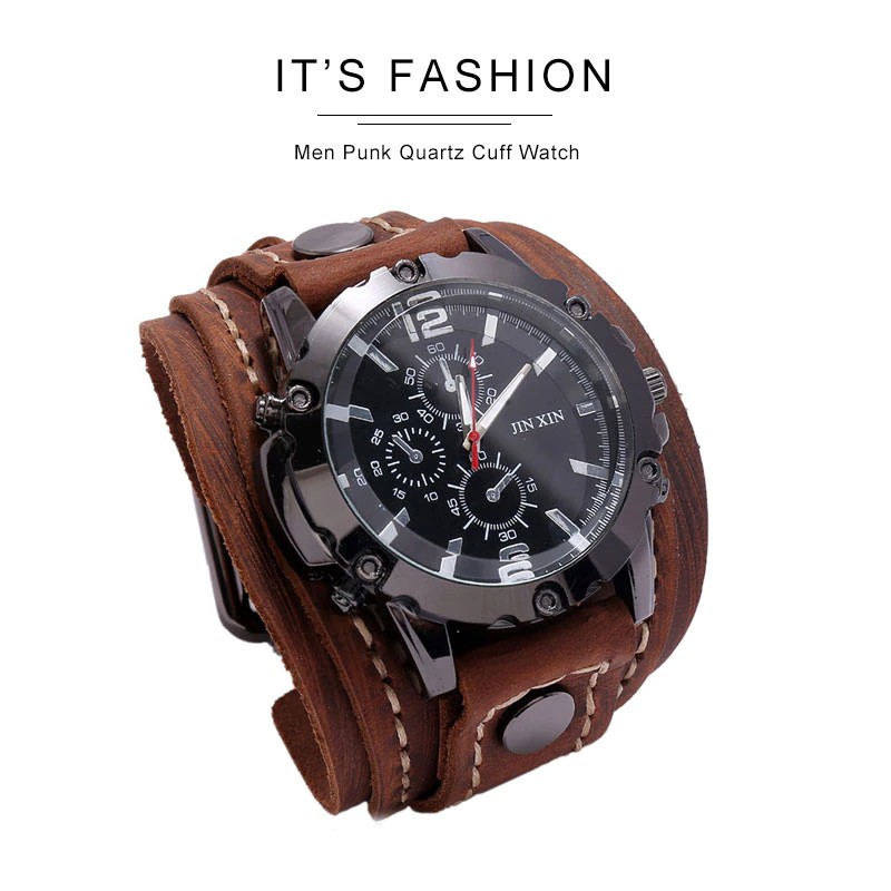 Jessingshow Männer Quarz Uhren Luxus Armbanduhr Neueste Armbanduhren Mode Punk Stil Männer Uhr Breit Echtem Leder Armbänder