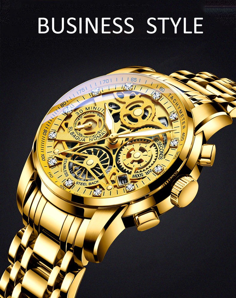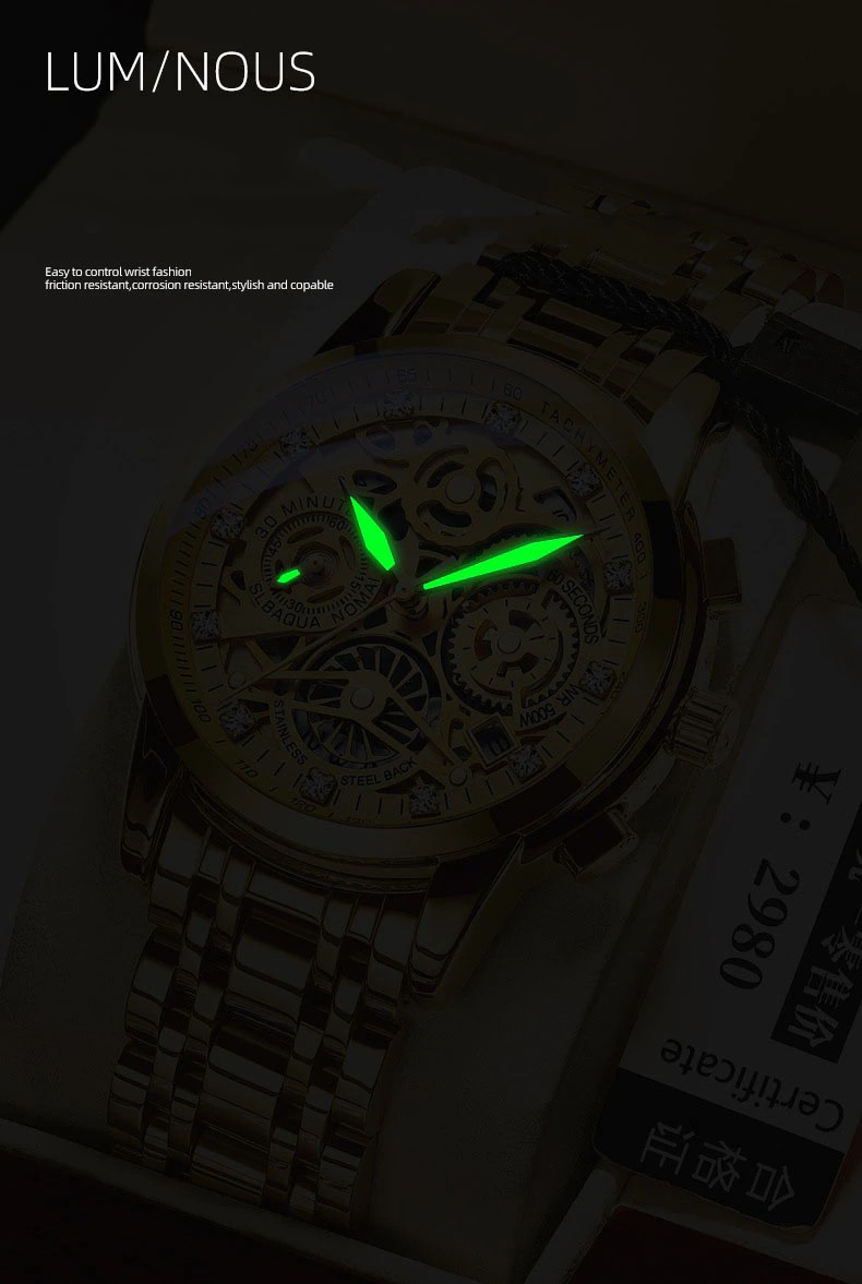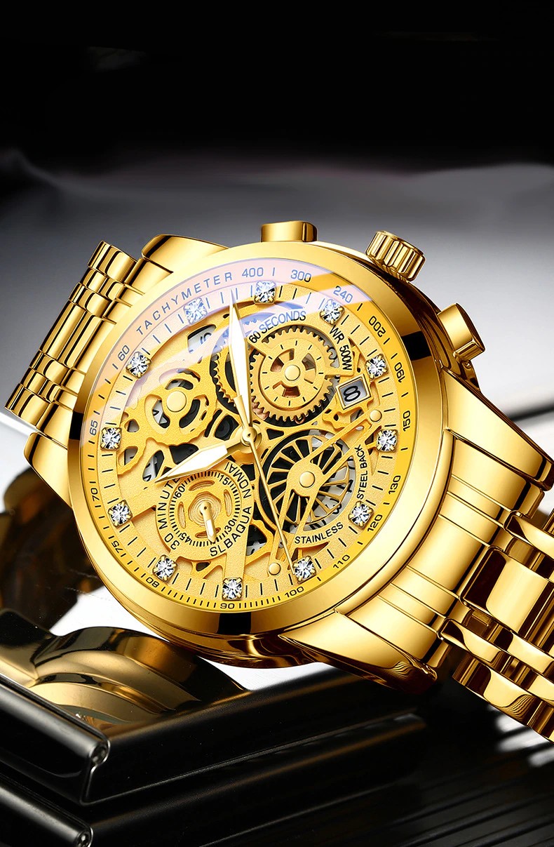 Männer Uhren Tourbillon Rotierenden Fenster Top Luxus Marke Mode Quarz Männer Uhr Wasserdicht Gold Stahl Business Armbanduhr