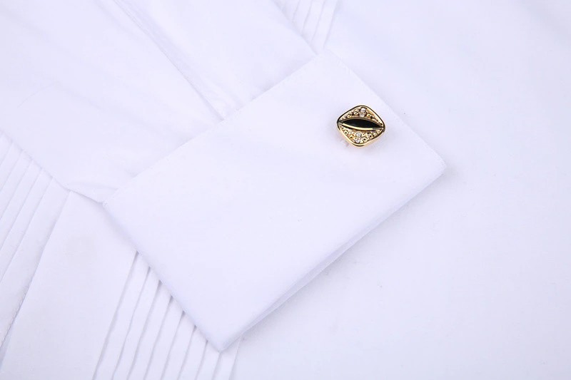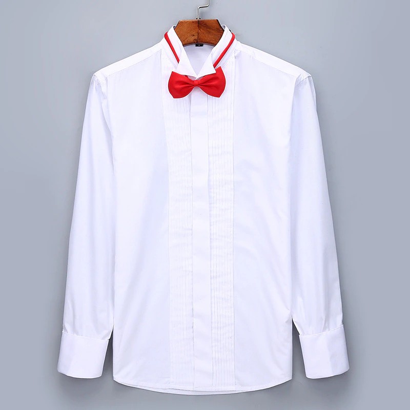 Männer Hochzeit Smoking Langarm Kleid Shirts Französisch Manschettenknöpfe Schwalbenschwanz Falten Dark Taste Design Gentleman Shirt Weiß Rot Schwarz