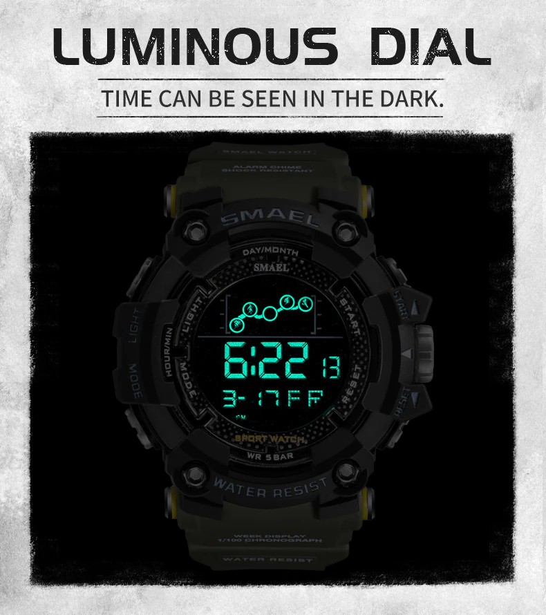 Herren Uhr Military wasserdicht SMAEL Sport uhr Armee führte Digitalen handgelenk Stoppuhren für männlichen 1802 relogio masculino Uhren