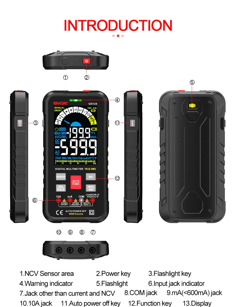 Neue 9999 Zählt Digital Multimeter Smart Auto Range 1000V 10A Tester Meter Ohm Hz Kapazität Rel True Rms Ac Dc Dmm Multitester