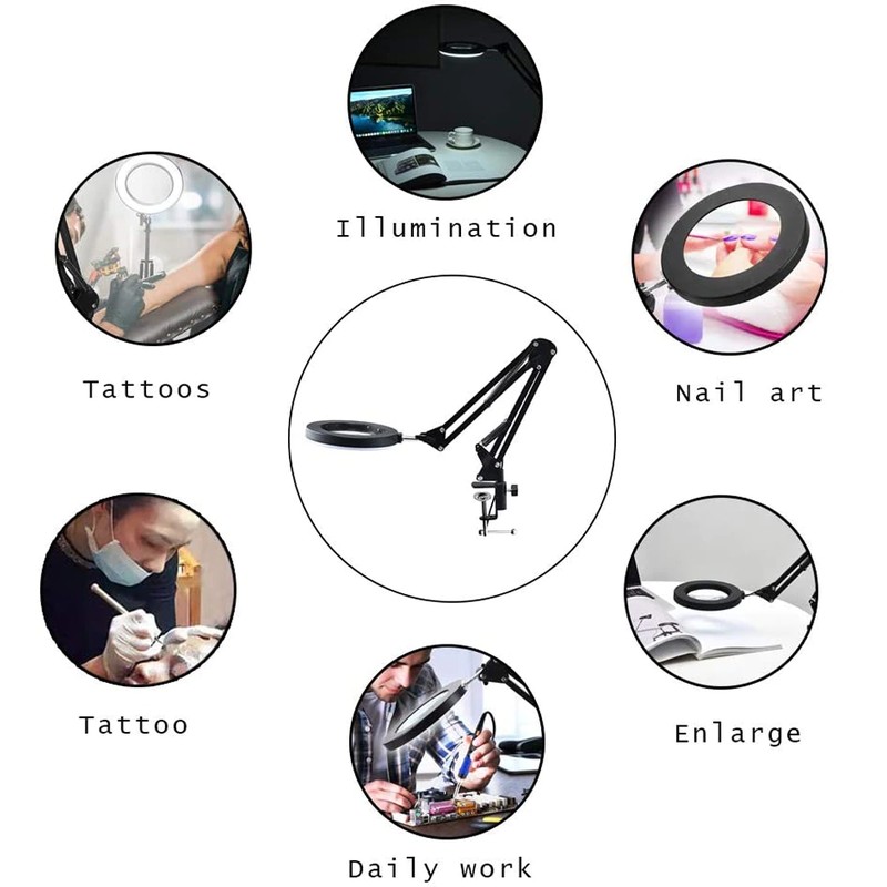 Lupe mit Licht und Stand,3 Farbe Modi Stufenlose Dimmen, einstellbare Swing Arm LED Lupe Schreibtisch Lampe 5-Dioptrien Glas Objektiv, für Schließen Arbeit, Reparatur, handwerk, Lesen, Nähen