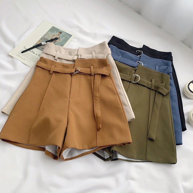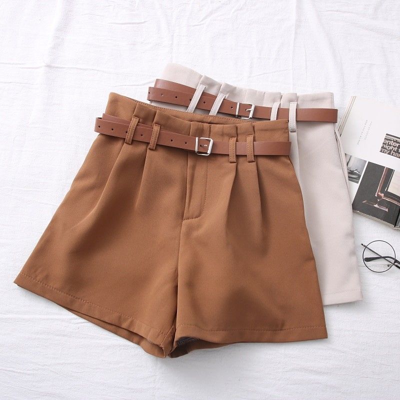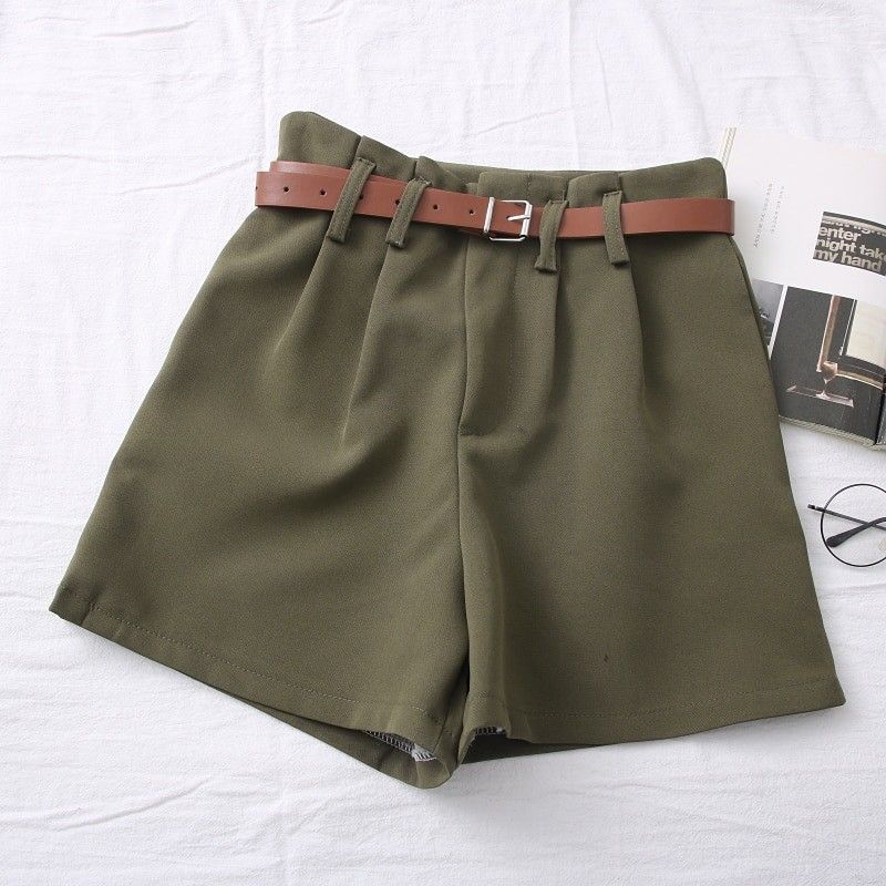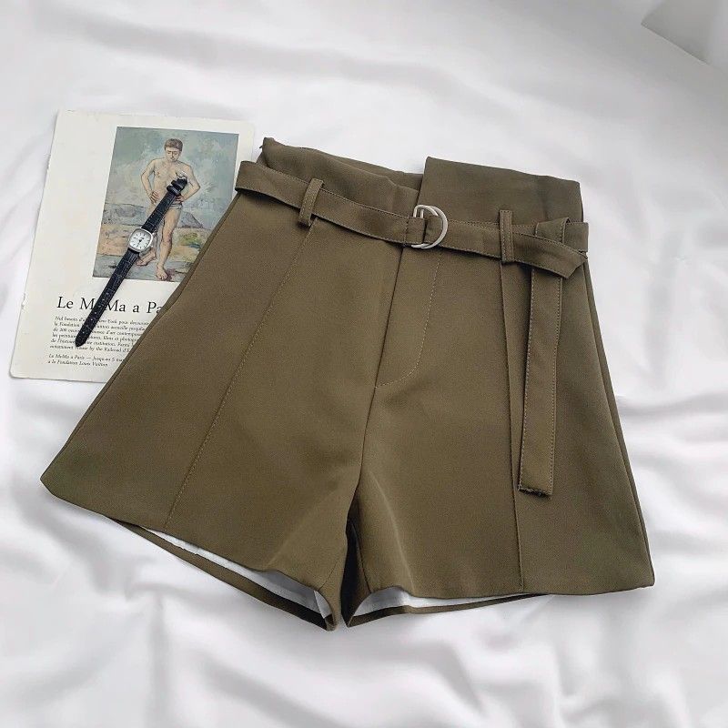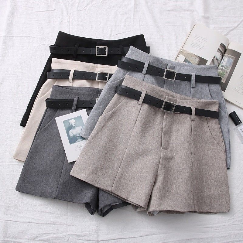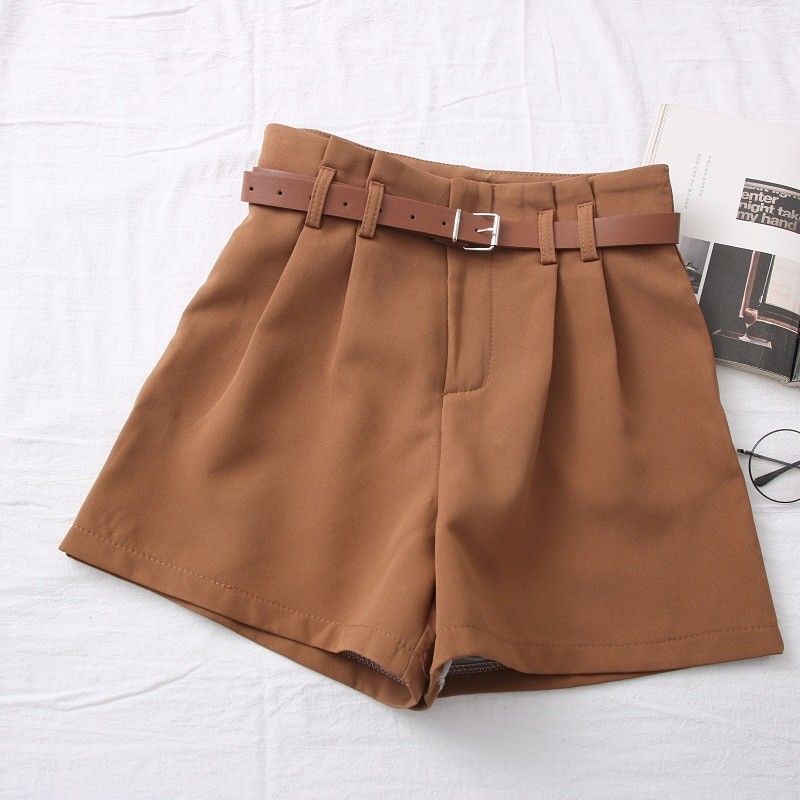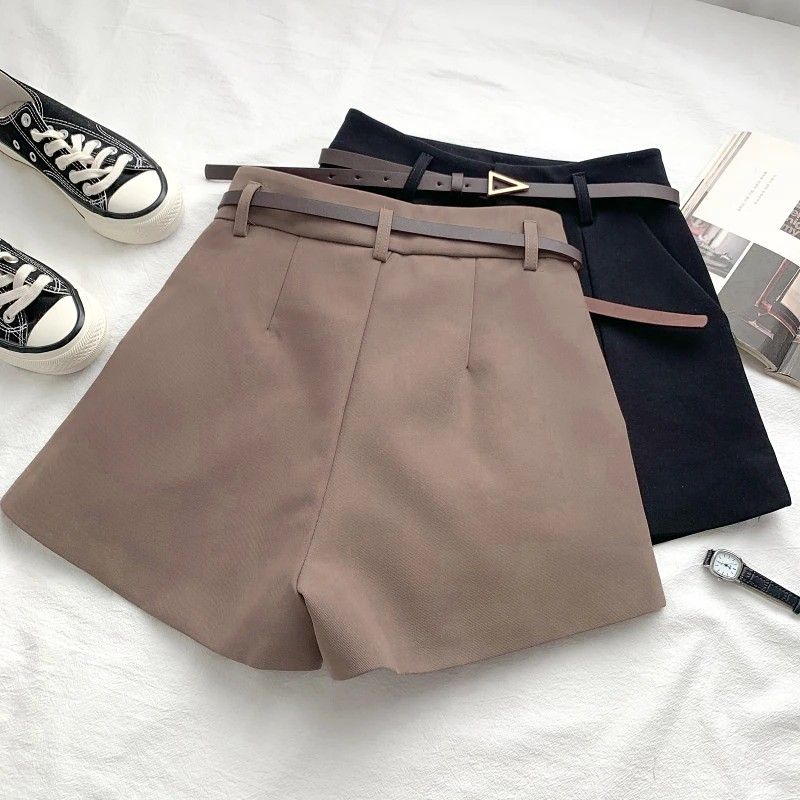 Neueste Neue Casual Komfortable Elegante wild Shorts Mit Gürtel Frauen Woolen Shorts Herbst Winter Schlank Breite Bein A-Line Shorts