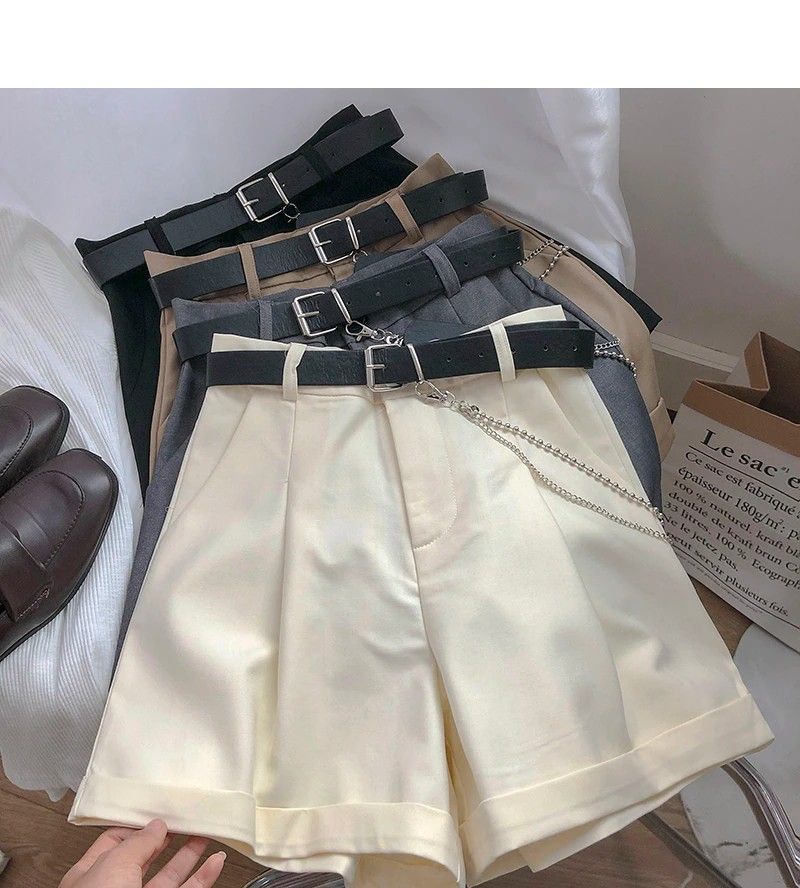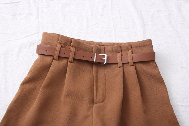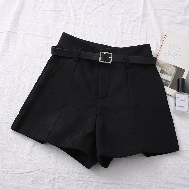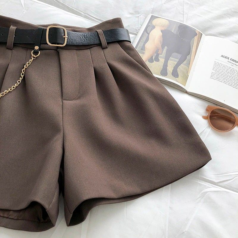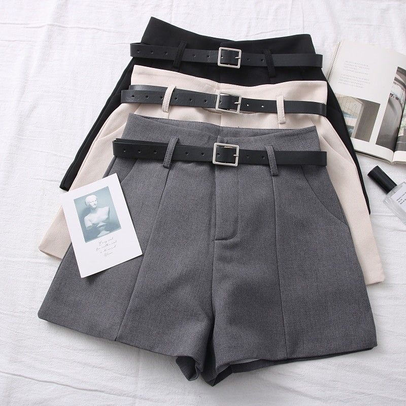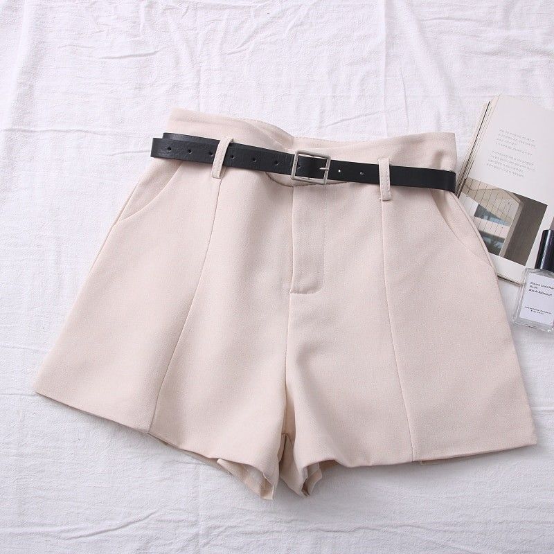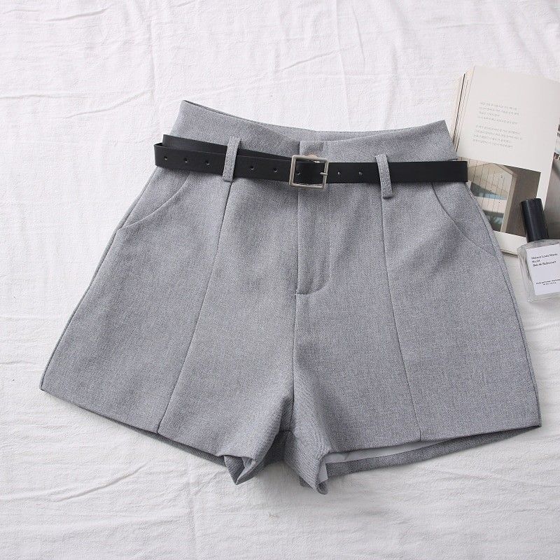 Neueste Neue Casual Komfortable Elegante wild Shorts Mit Gürtel Frauen Woolen Shorts Herbst Winter Schlank Breite Bein A-Line Shorts