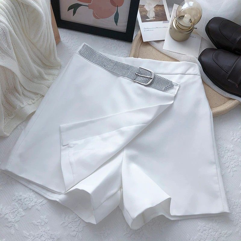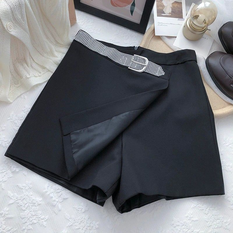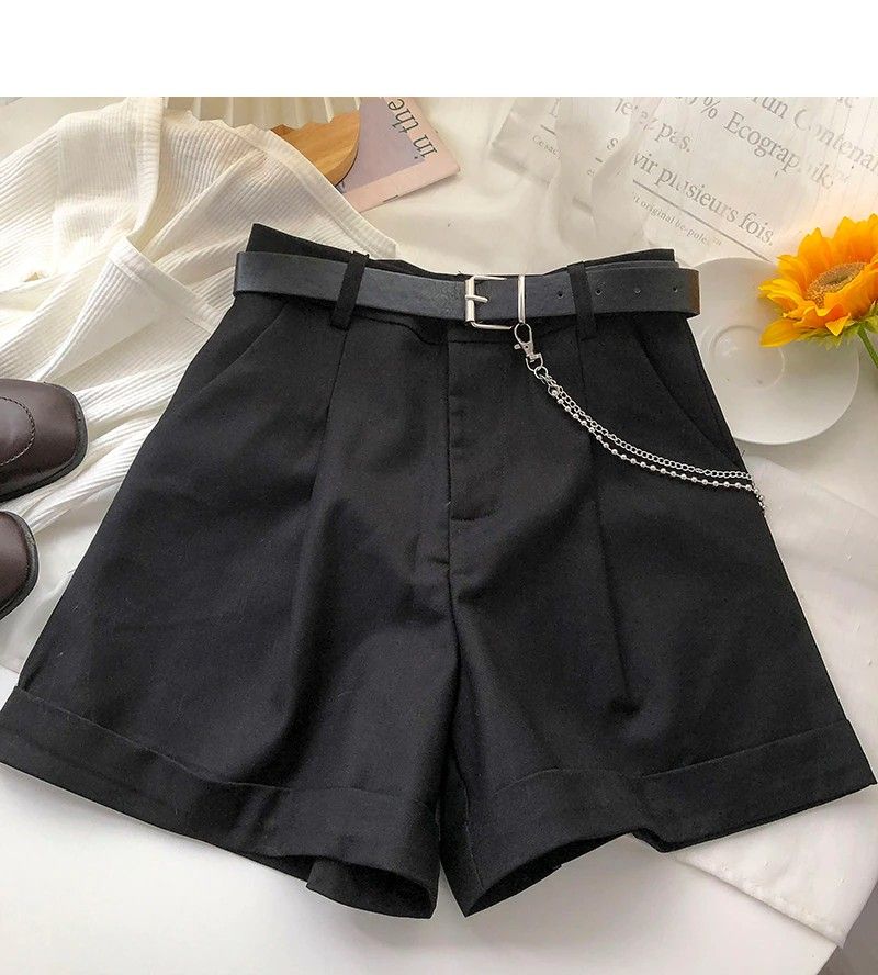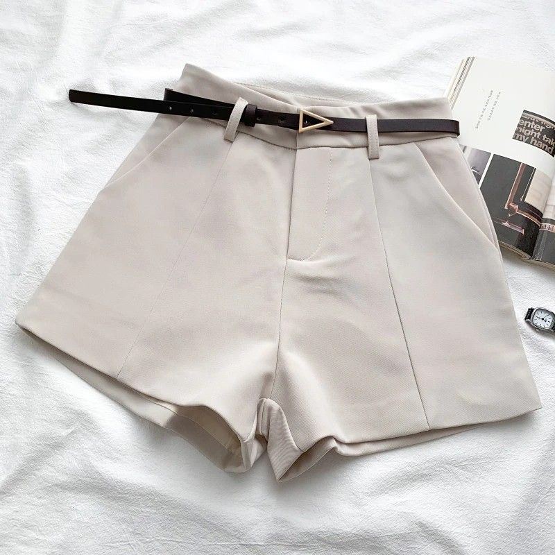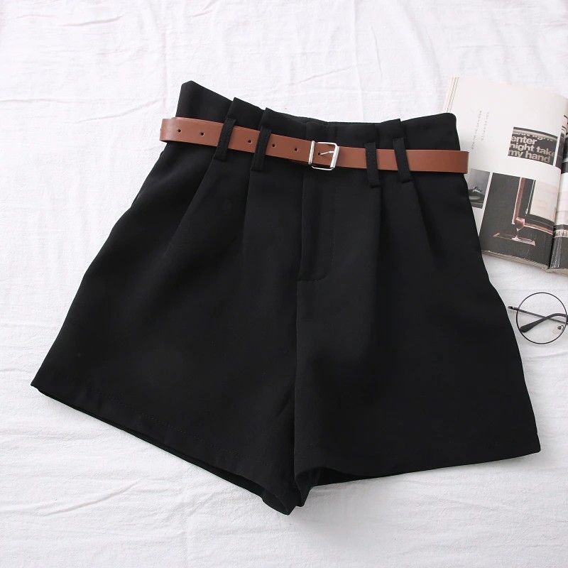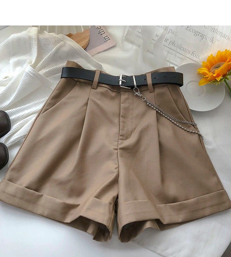 Neueste Neue Casual Komfortable Elegante wild Shorts Mit Gürtel Frauen Woolen Shorts Herbst Winter Schlank Breite Bein A-Line Shorts