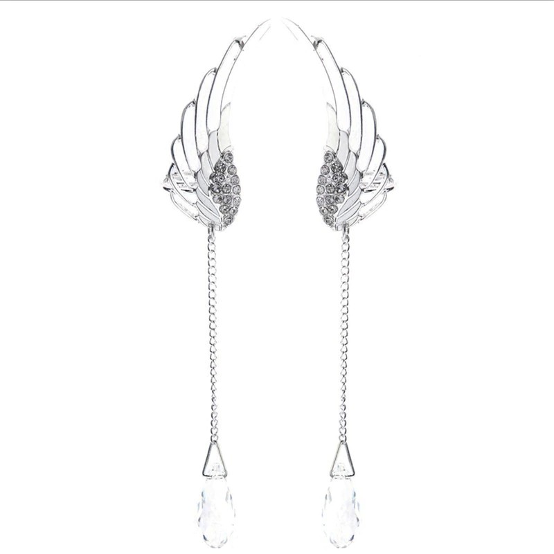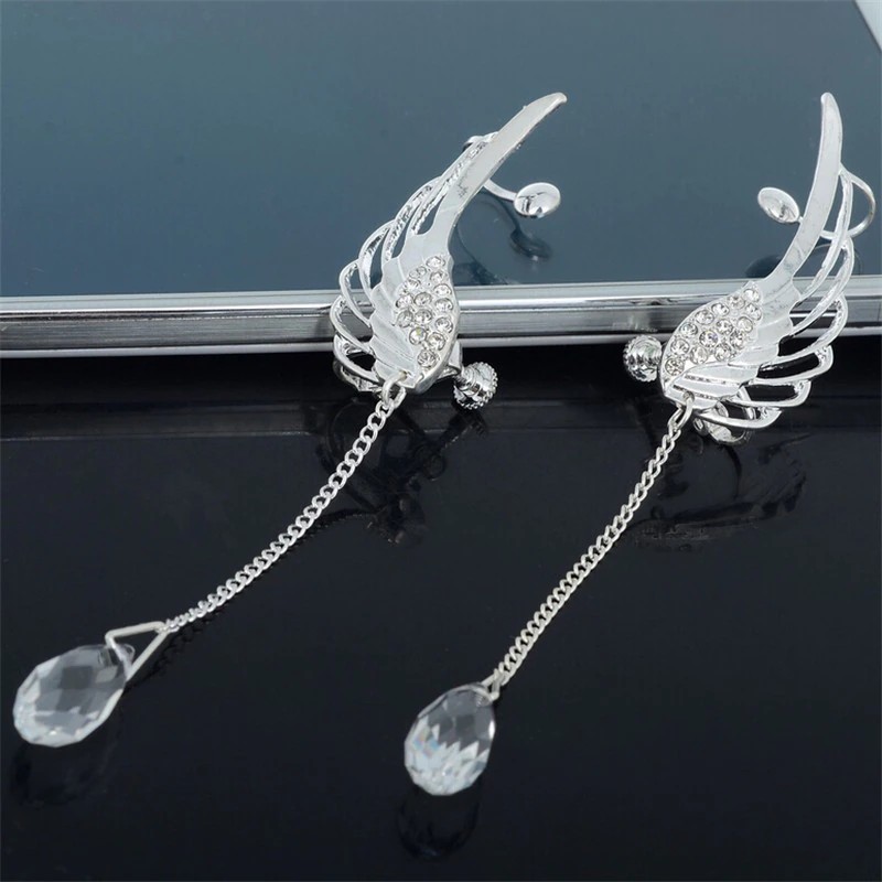 Neueste Neue Silber Überzogene Engel Flügel Stylist Kristall Ohrringe Tropfen Baumeln Ohr Stud Für Frauen Lange Stulpe Ohrring Böhmen Jewelrys