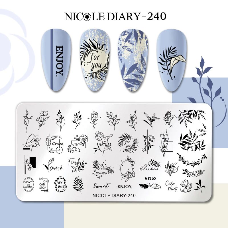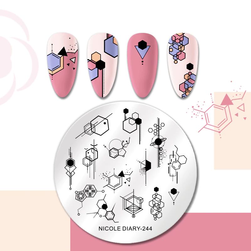 Nicole Tagebuch Blume Französisch Linie Muster Nagel Stanzen Platten Geometrische Blatt Floral Nail Art Stempel Schablone Druck Vorlage