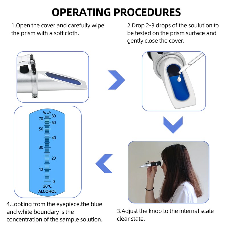 1. diese refraktometer ist eine spezielle modell für brennereien und likör makers zu bestimmen die alkohol inhalt von destillaten ohne zucker.