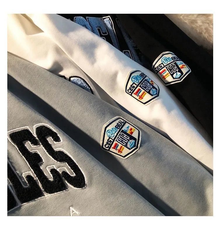 Retro Bestickt Sweatshirt Harajuku V-Ausschnitt Neueste Frühling Plus Größe Pullover Koreanischen Stil NS Liebhaber Brief Langen Ärmeln Hemd