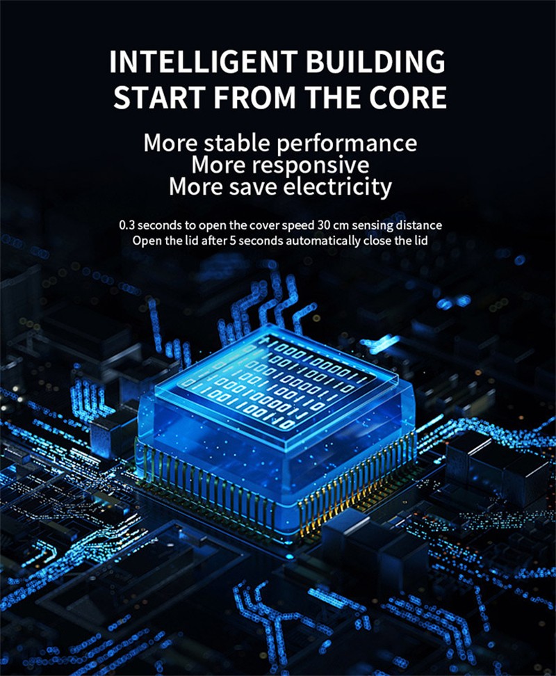 4. infrarot induktion: legen sie ihre hand über 10cm-20cm über dem induktion bereich. Der deckel öffnet sich automatisch und schließt automatisch nach 5 sekunden.