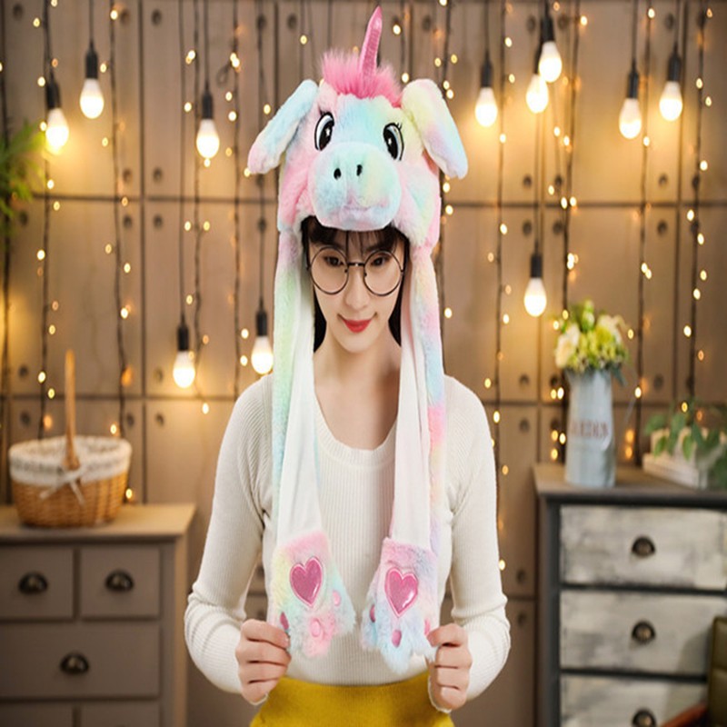 Einhorn Tier Ohr Hut Plüsch Hase Ohren Moving Springen Up Spielzeug Kleid Up Lustige Cosplay Party Für Kinder Weihnachten Geschenk Für Erwachsene