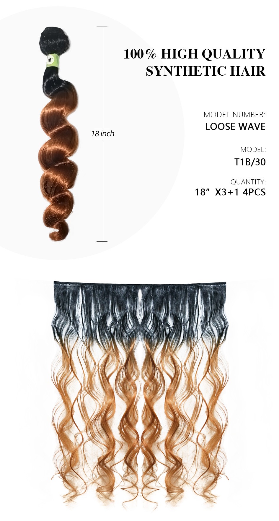 Lose Welle Bundles mit Verschluss Synthetische Weben Haar 18-30 inch Ombre Natürliche Braun Extensions Bundles Haar für Schwarz frauen