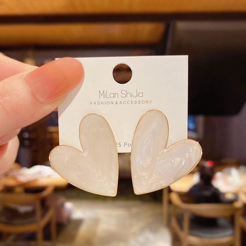 Weiß Farbe Große Herz Stud Ohrringe Für Frauen Mädchen Koreanische Liebe Tropfen Glasur Ästhetischen Täglichen Leben Minimalistischen Schmuck Piercing Ohr