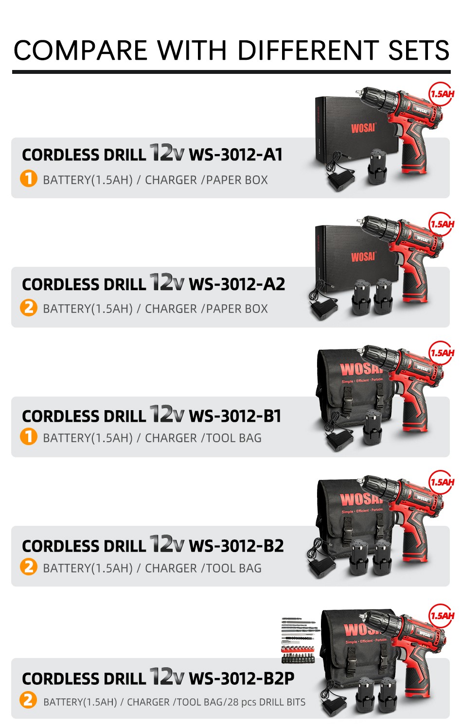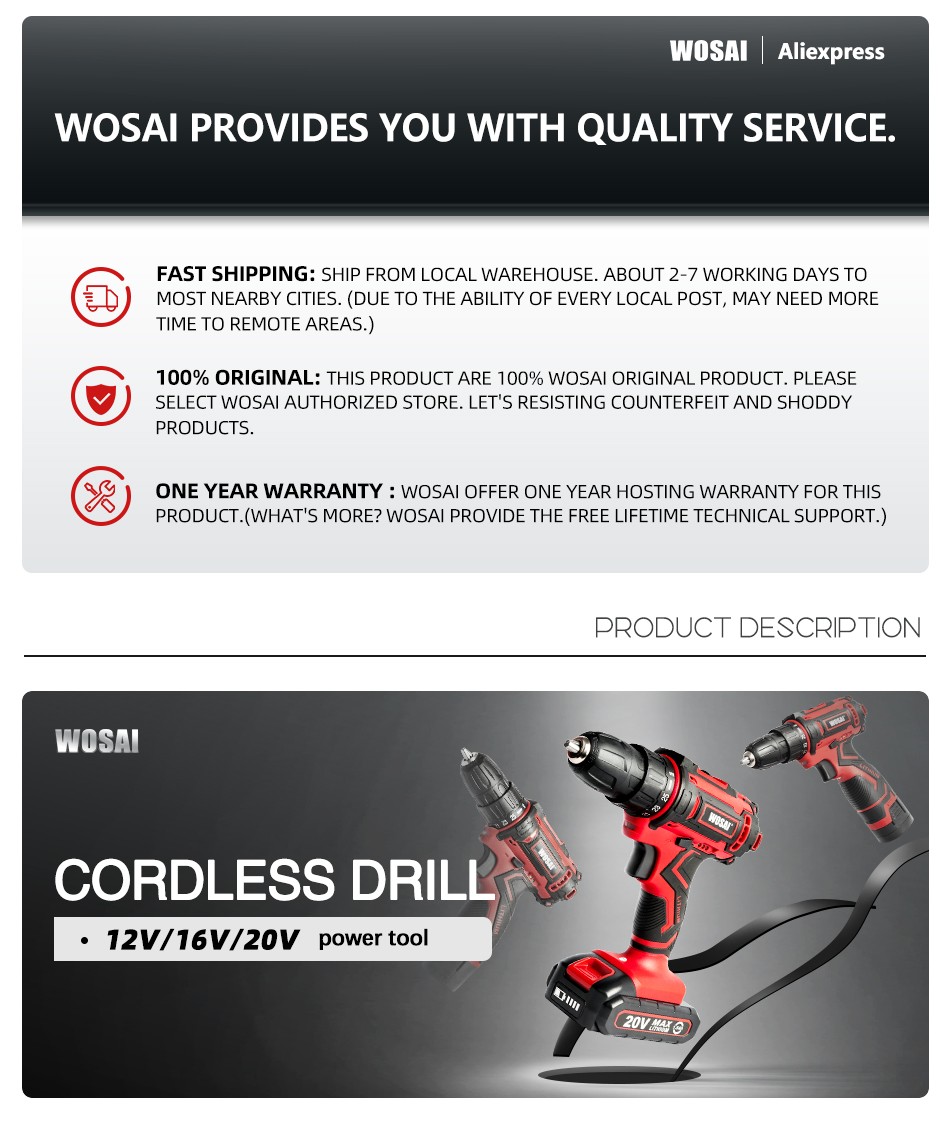 Wosai 12V 16V 20V Akku-Bohrschrauber Elektrische Schraubendreher Mini Wireless Power Fahrer Dc Lithium-Ionen Batterie 3/8-Zoll