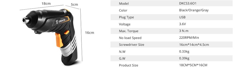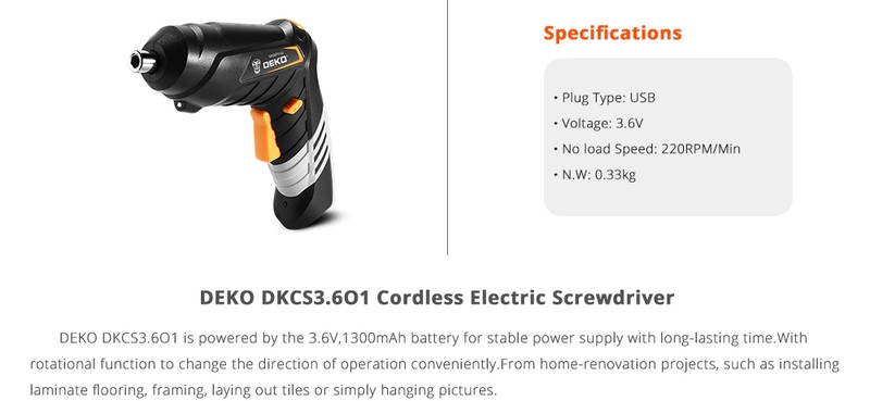 Deko - Visseuse Sans Fil 3Nm, Visseuse Devisseuse Sans Fil 1300Mah 3.6V, Lumière Led Avant