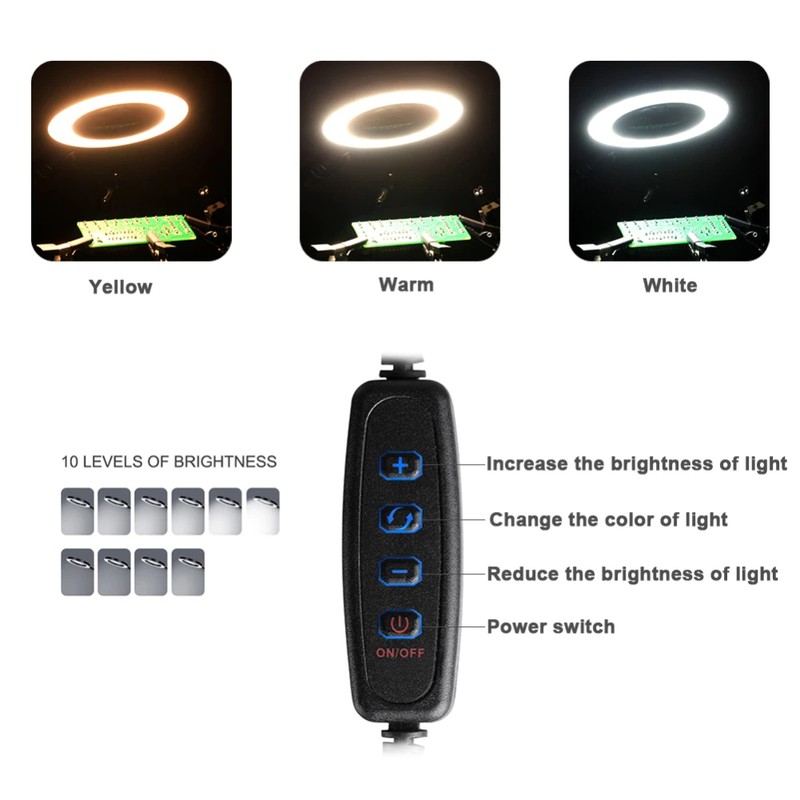 4. lupa com luz led, a temperatura de cor da luz led pode ser ajustada em 3 etapas e o brilho pode ser ajustado em 11 etapas, pode encontrar vários ambientes de trabalho.
