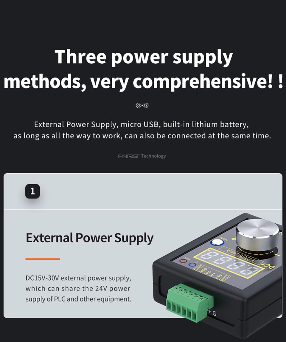 Fnirsi SG-003A信号発生器は、主に産業フィールドPLC、プロセス計装、電気バルブなどのデバッグに使用されます。 使いやすい操作インターフェイスです。