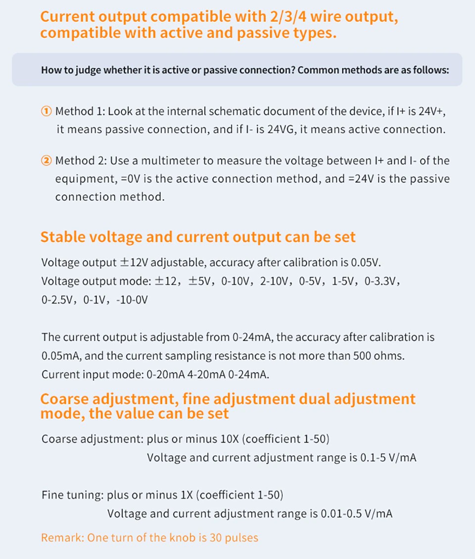 4. 24v電圧出力: 駆動電流: 24ma; 解像度: 0.01 ma; 精度: ±(0.1% + 0.005)