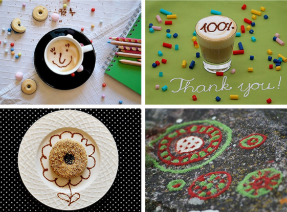 Gosto de FazerMensagens criativas & DesenhoCom especiarias moídas ou outros materiais naturais usandoGênio Caneta Latte