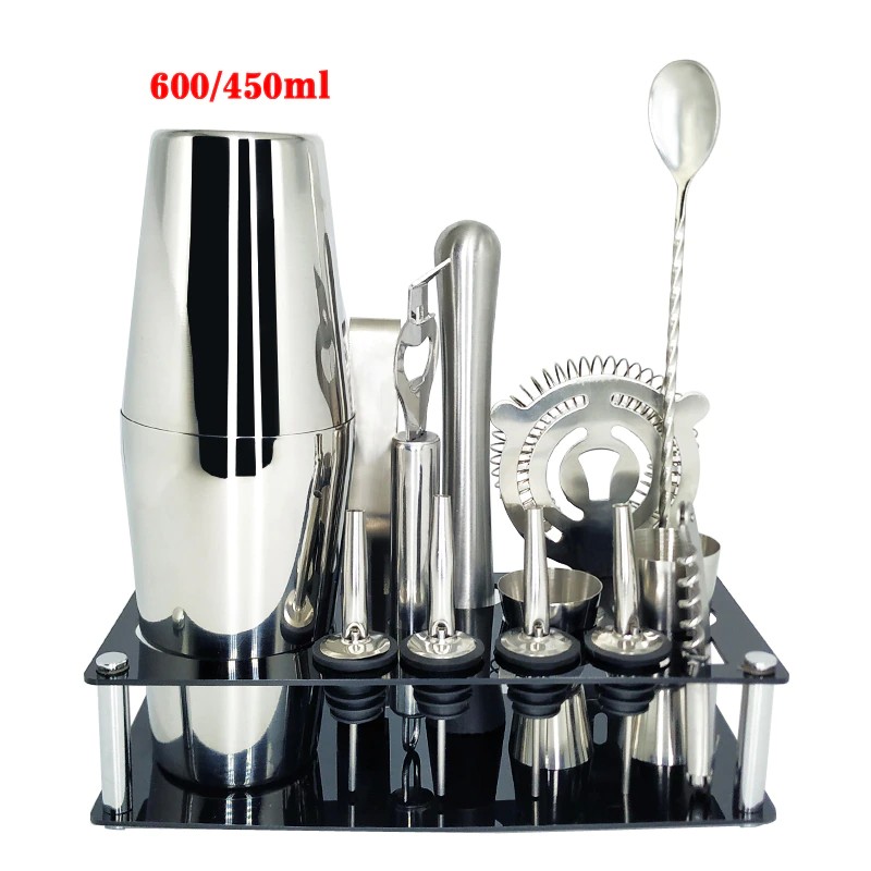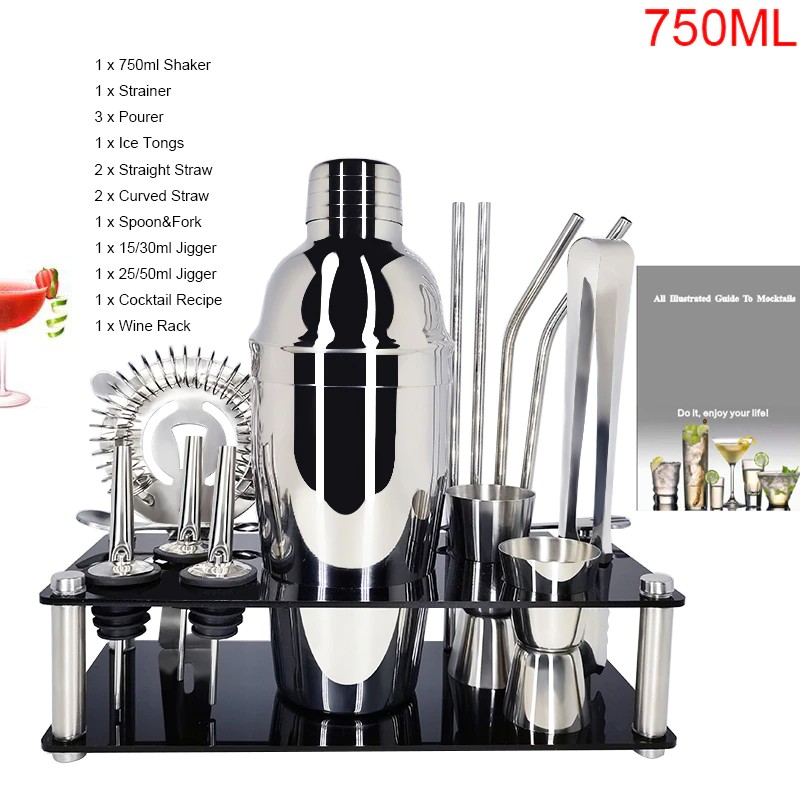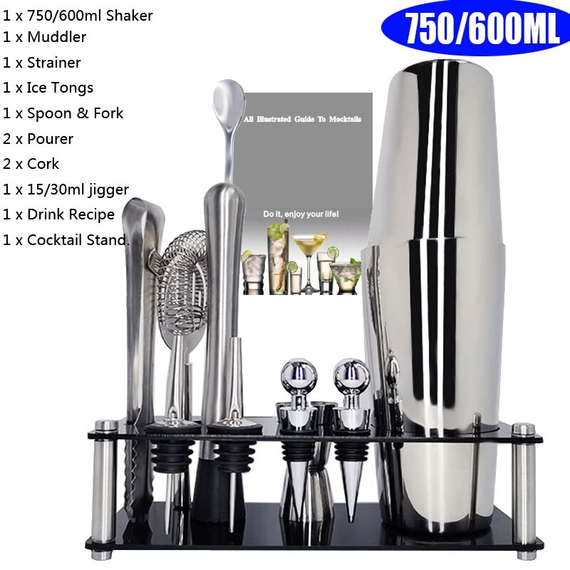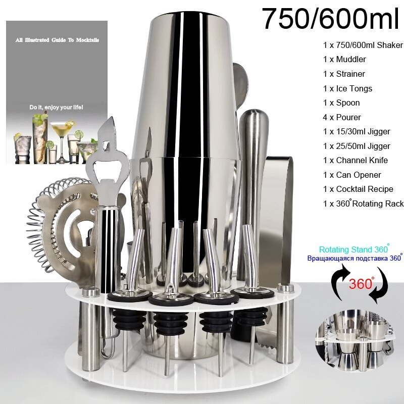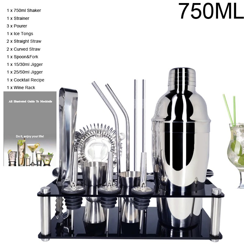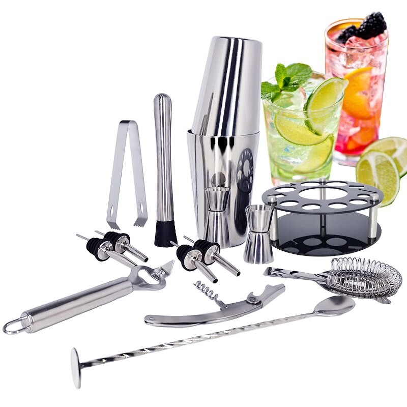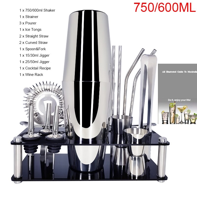 Juego De Coctelera En Acero Inoxidable Para Barman, De 1 A 14 Piezas, Set Mezclador Bebidas Con Kit Barras Y Herramientas, Con Soporte Vino De 600 O 750Ml