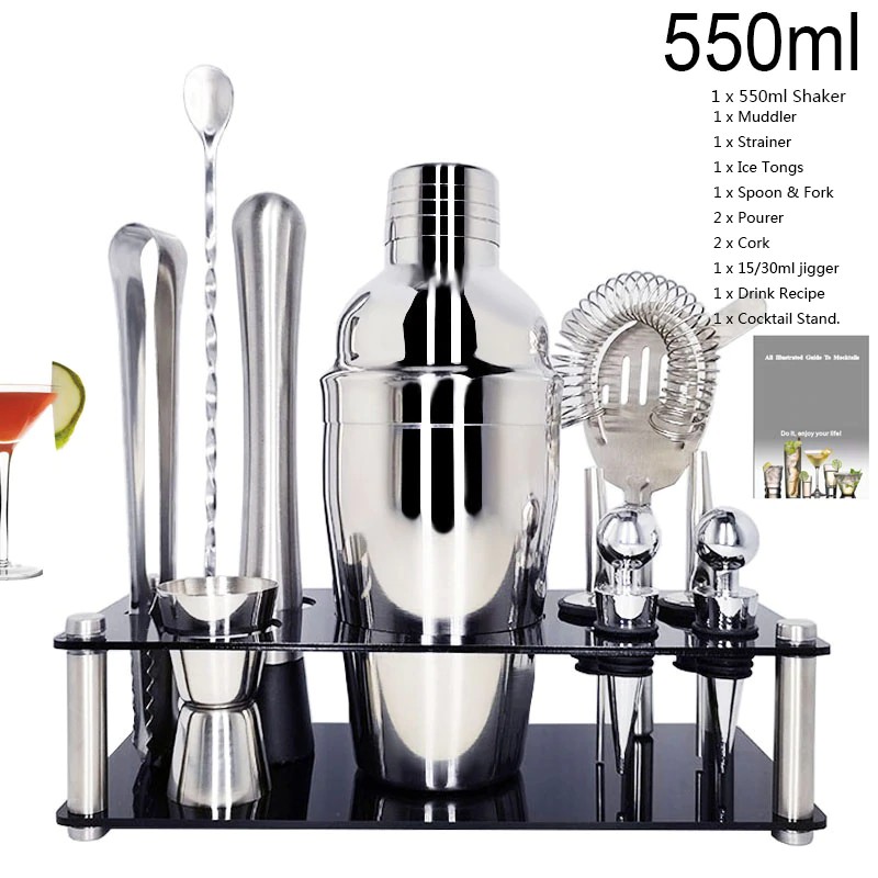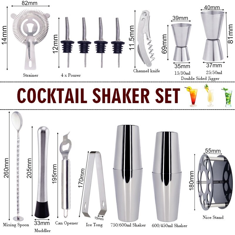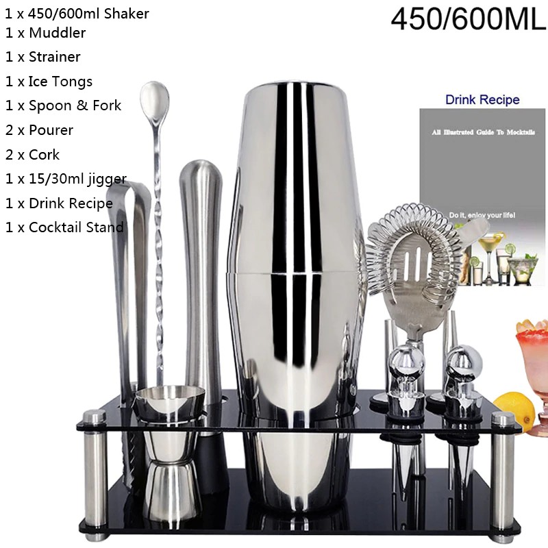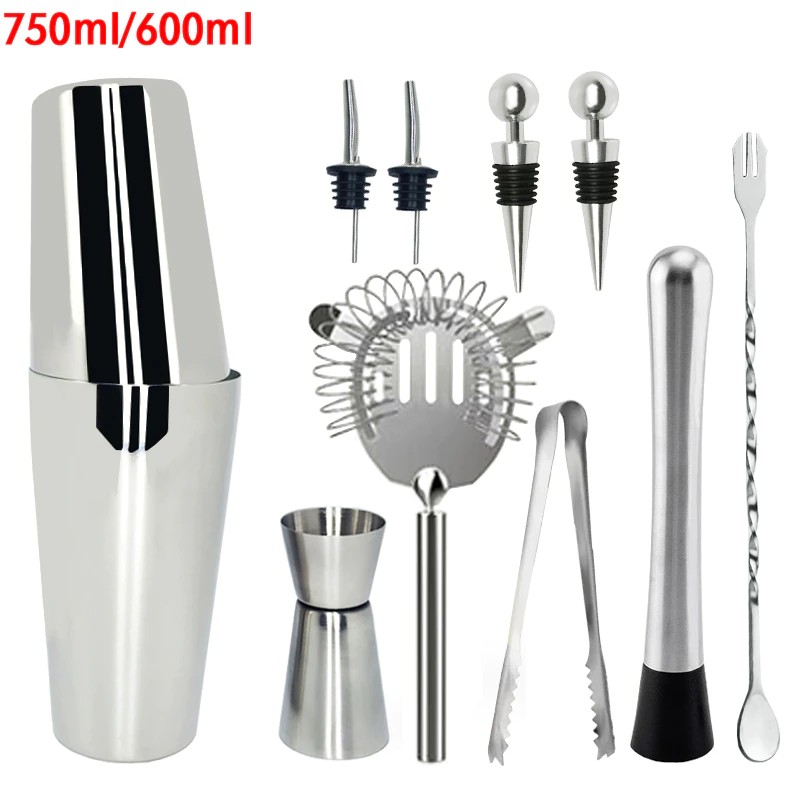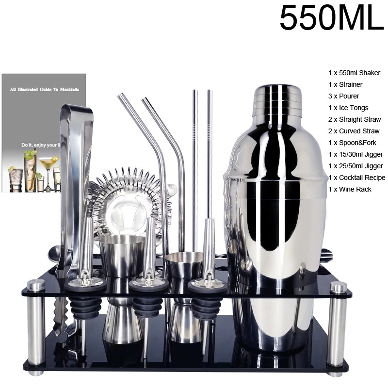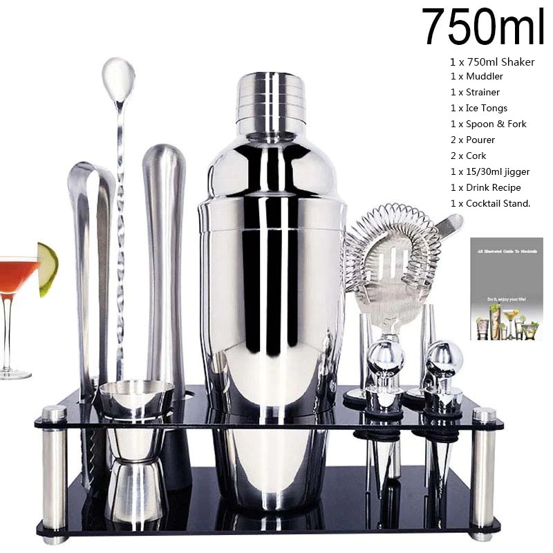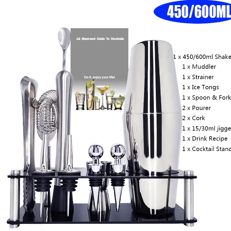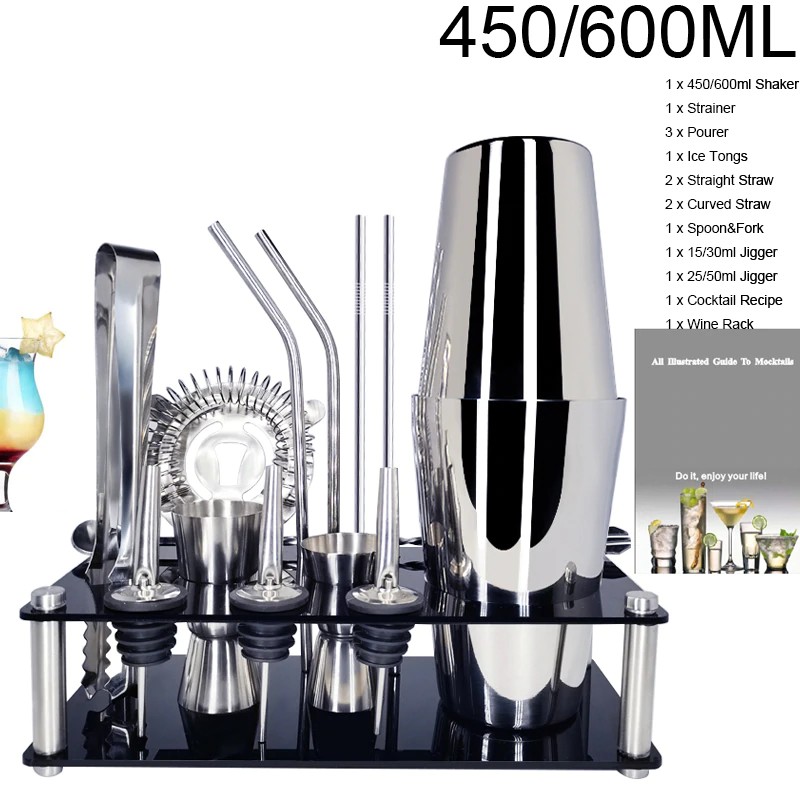 Juego De Coctelera En Acero Inoxidable Para Barman, De 1 A 14 Piezas, Set Mezclador Bebidas Con Kit Barras Y Herramientas, Con Soporte Vino De 600 O 750Ml