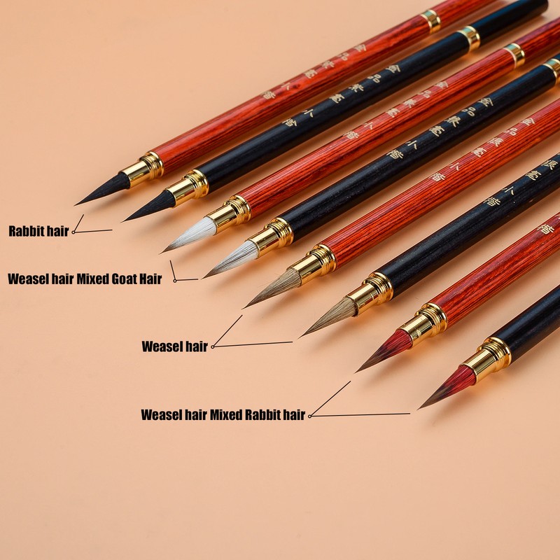 4 tipos de materiales de pinceles: pelo de comadreja (duro), pelo de conejo (suave), pelo de cabra mixto de comadreja (mediano), pelo de conejo mixto de comadreja (mediano).