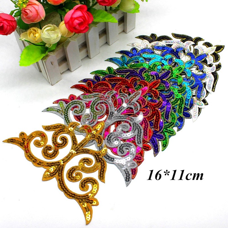 Plancha en apliques de lentejuelas Oro y SILV: hierro en apliques de lentejuelas de oro y plata parches bordados cosplay