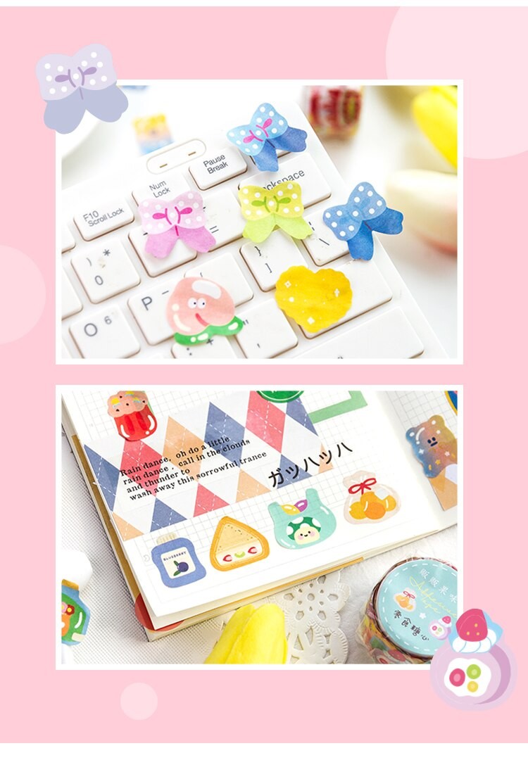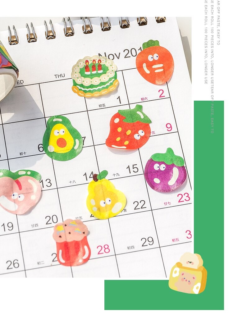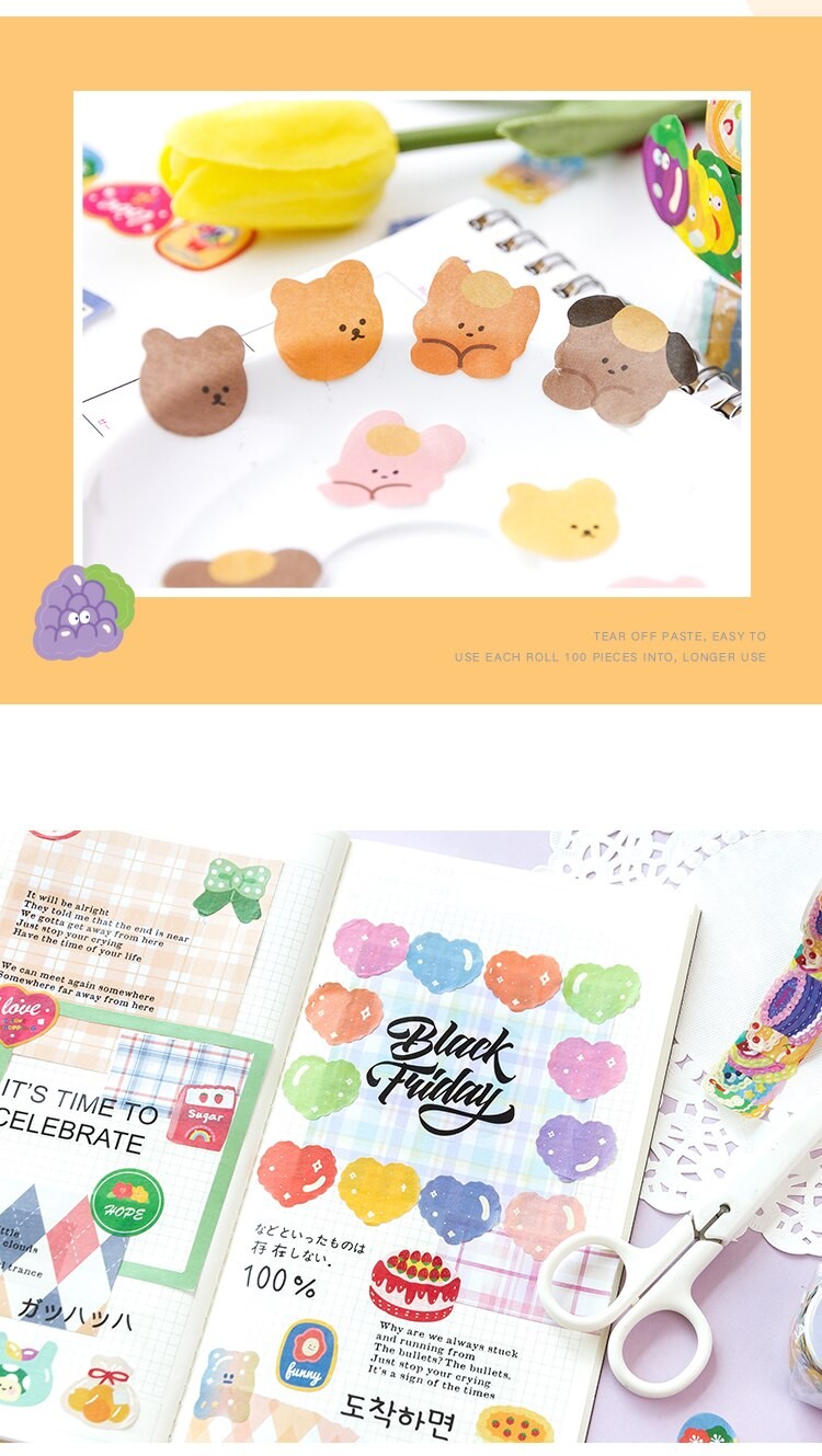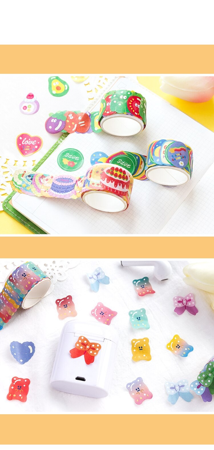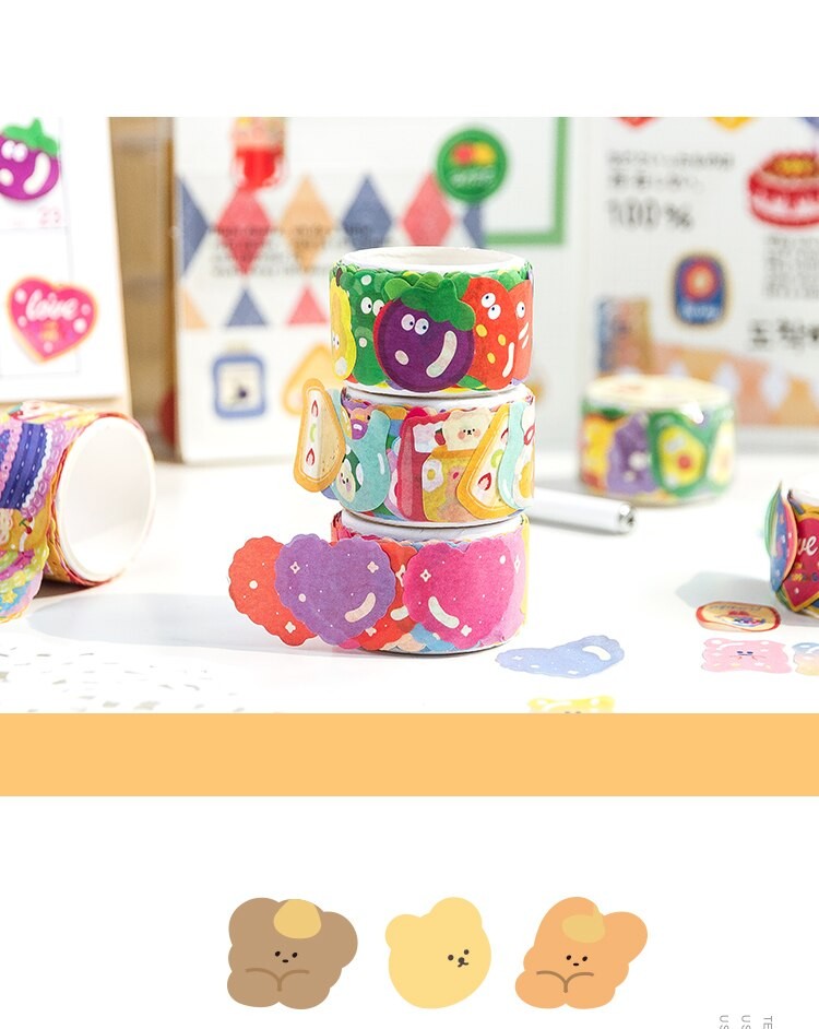 Cinta Adhesiva De Color Caramelo Para Manualidades, 1 Rollo/100 Piezas, Dibujos Animados Oso Fruta Pastel Leche Lazo Corazón, Para Álbum De Recortes
