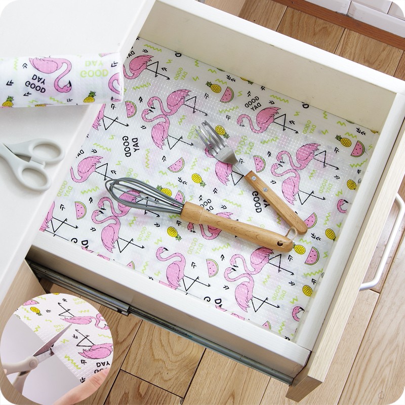 1 Rollo De Pegatinas De Cocina, Estera Mesa, Cajones Estantería Armarios Flamencos Mantel Impermeable Zapatos A Prueba Aceite, Alfombrilla De Armario