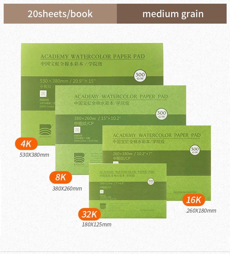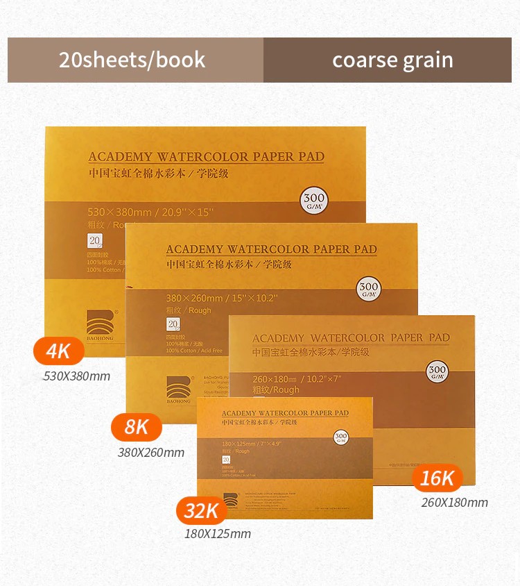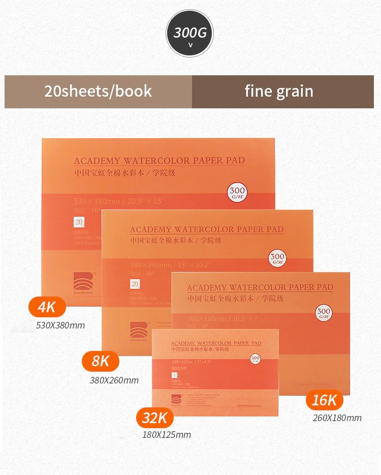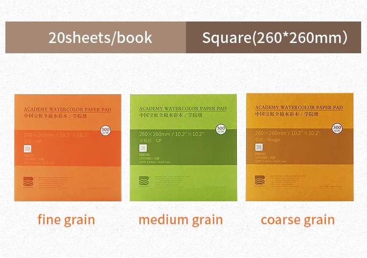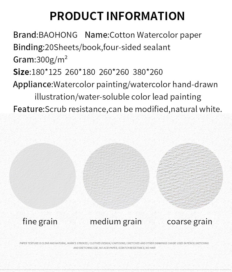 Acuarela de pulpa de algodón, el papel de acuarela está dividido en textura clara (grano fino, grano medio, grano grueso), resiste modificaciones, blanco natural, adecuado para pintura de acuarela