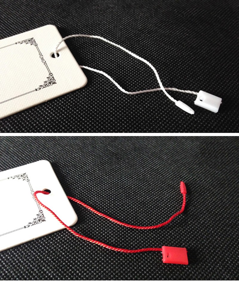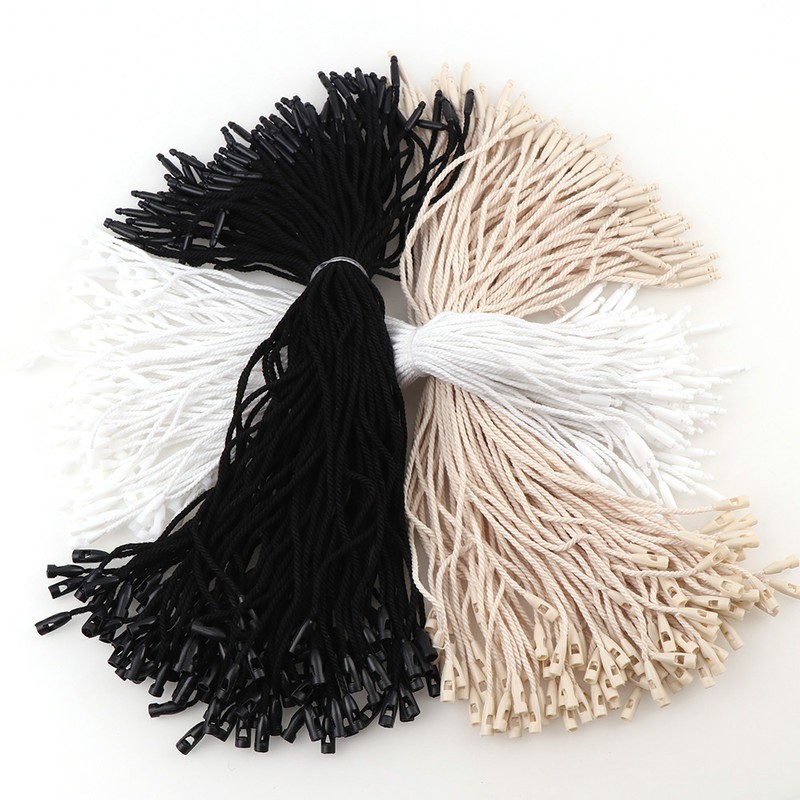 100 Unids/Lote De Etiquetas De Plástico Blancas, Beige Y Negras Para Colgar Cuerda Poliéster, Pasador Bloqueo A Presión, Sujetadores De Lazo