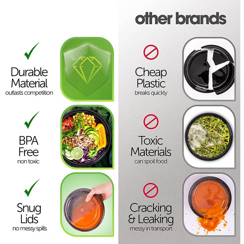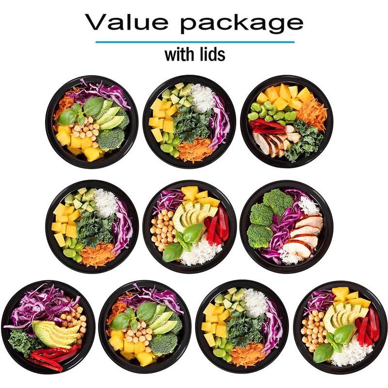 Mantenga los alimentos frescos-los contenedores de preparación de alimentos son conocidos por su alta calidad. Selle la tapa para mantener la comida fresca durante más tiempo. Muy adecuado para la Oficina, la universidad, el gimnasio, la familia, los viajes o el picnic. Nuestros contenedores están hechos de plásticos de alta calidad más caros, que son más gruesos, más fuertes y más duraderos que las marcas de la competencia. Almacenamiento de sopa resellable/tazones de ensalada-estos contenedores redondos se pueden usar como tazones de ensalada de caja de almuerzo y mantener los alimentos frescos. O para cocinar sopa por lotes, congelar y disfrutar de la sopa caliente fresca casera en cualquier momento y en cualquier lugar Preparación previa a las comidas y control de porciones-10 contenedores apilables, perfectos para comidas ketogénicas u otras partes controladas, preparación de comidas, sobras, ensaladas, pasta y aperitivos saludables. Cada recipiente está en proporciones perfectas, ayudándote a adherir a un plan de dieta equilibrado. Cada recipiente puede almacenar 24 onzas de comida. Tamaño del contenedor único = 7,3 pulgadas (diámetro) 2,3 pulgadas (altura) Se puede utilizar en hornos microondas, refrigeradores y lavavajillas-hechos de plástico de alta calidad, sin BPA, estos contenedores pueden soportar temperaturas altas y bajas, por lo que pueden calentarse o enfriarse. Se puede reutilizar y se puede utilizar de forma segura en hornos de microondas, refrigeradores y lavavajillas. Nuestra cubierta elevada implica una capacidad de almacenamiento adicional, por lo que su comida no se comprimirá.